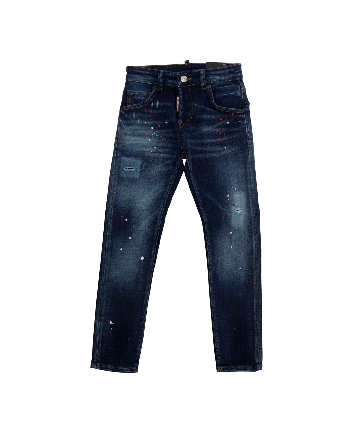 Jeans Blue Five-pocket design Belt loops Button closure Two side pockets Ripped and patent details Logo patch on the back Cotton Regular fit