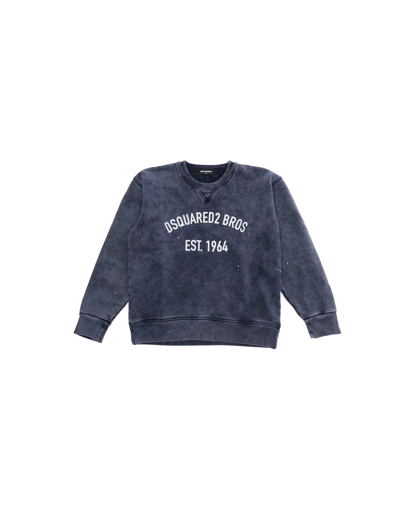 Dark Blue Crew Neck Sweatshirt With Logo Print On The Front In Cotton Boy