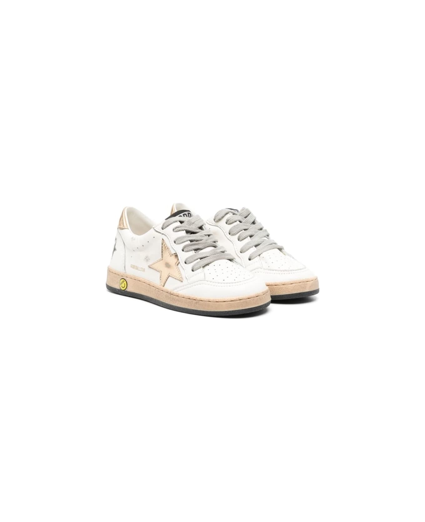 ballstar White Low Top Sneakers With Star Patch On The Side And Maxi Lettering On The Rear In Leather Boy