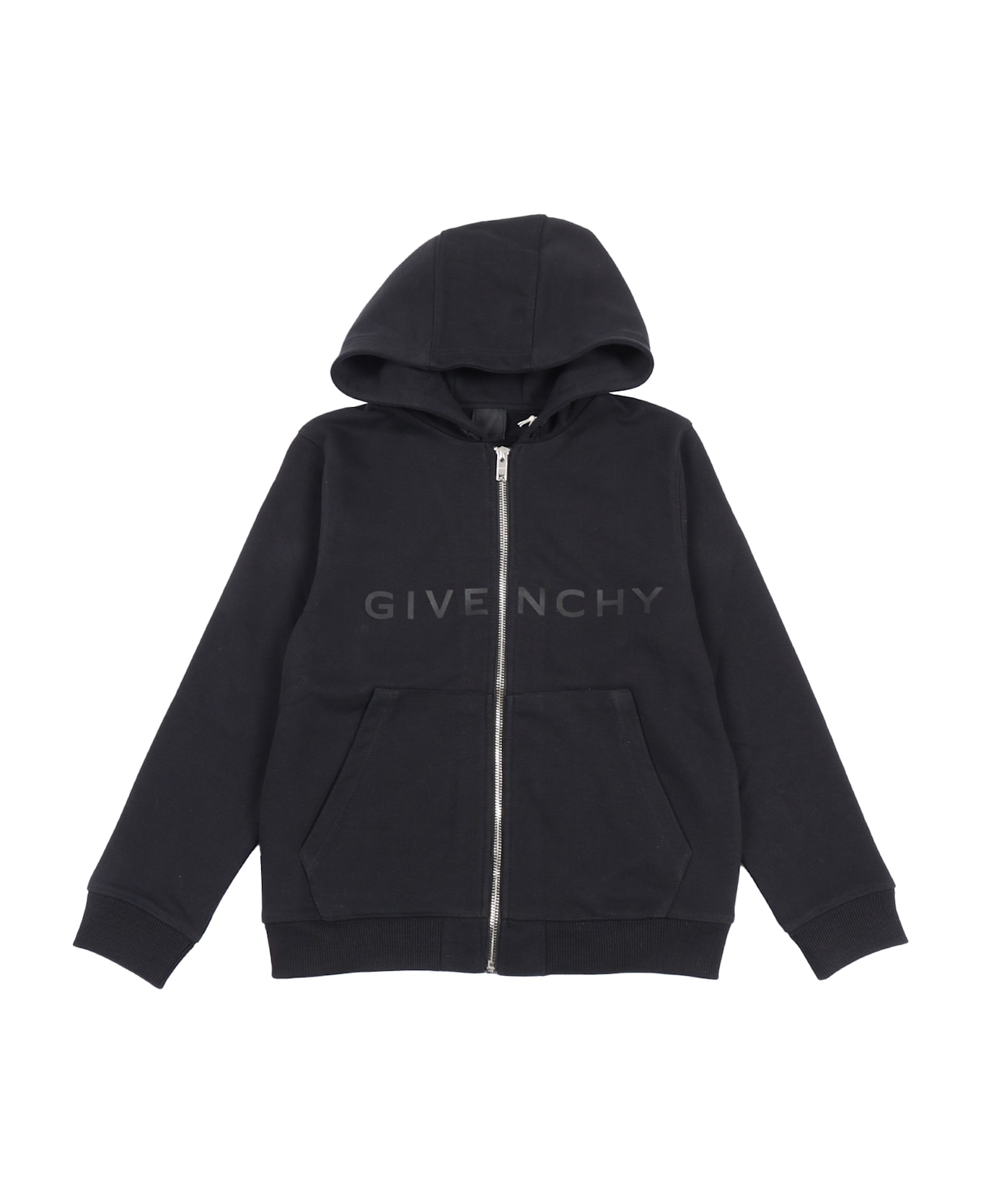 Hooded cardigan in fleece, 85% organic cotton 15% polyester, front zip closure, kangaroo pocket, Givenchy print on front. Composition: 99% COTTON 1% ELASTANE FABRIC 2 85% COTTON 15% POLYESTER