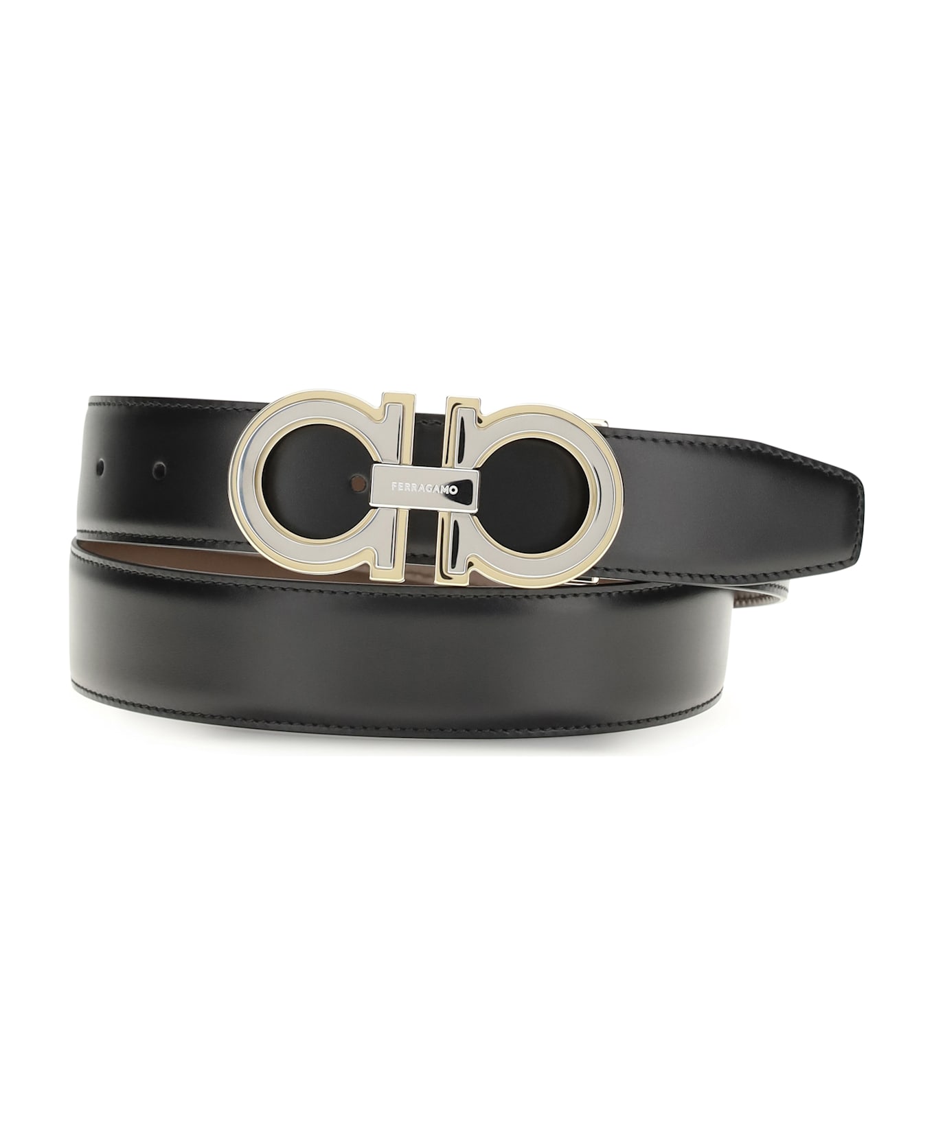 The reversible and adjustable gancini belt by ferragamo is crafted from soft calfskin treated with vegetable anilines, with a soft and delicate texture. the double-thickness gancini buckle in contrasting colors adds an elegant touch, while the reversible construction and adjustable length offer styling versatility and a personalized fit. Composition: 100% % Calf Leather Bos Taurus