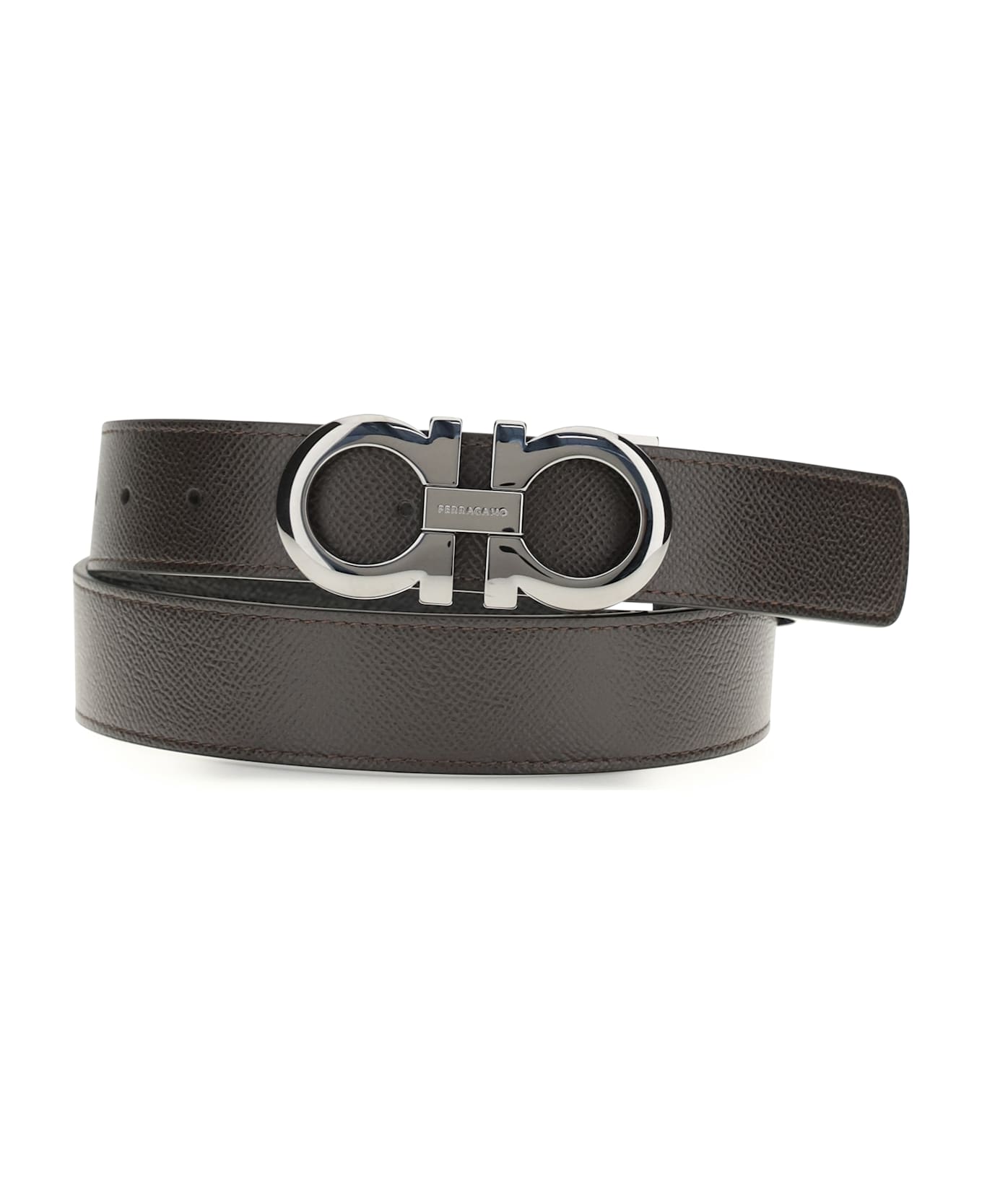 Calfskin reversible belt by ferragamo, double-face design, metal buckle with iconic brand gancini logo, brand signature engraved on buckle. Composition: 100% % Calf Leather Bos Taurus