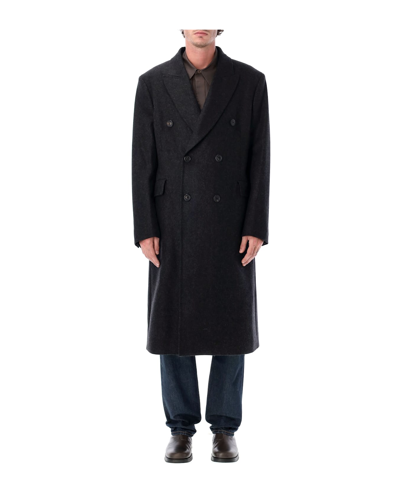 Our Legacy s Whale Coat Is Crafted From Premium Italian Virgin Wool Fabric With Water-repellent Properties. Designed With A Relaxed Tailored Fit, It Features A Double-breasted Front With Horn Buttons, Peaked Lapels, And Flapped Jet Pockets. Fully Lined And Finished With A Single Back Vent, This Refined Coat Blends Timeless Elegance With Everyday Functionality. Italian Virgin Wool Fabric