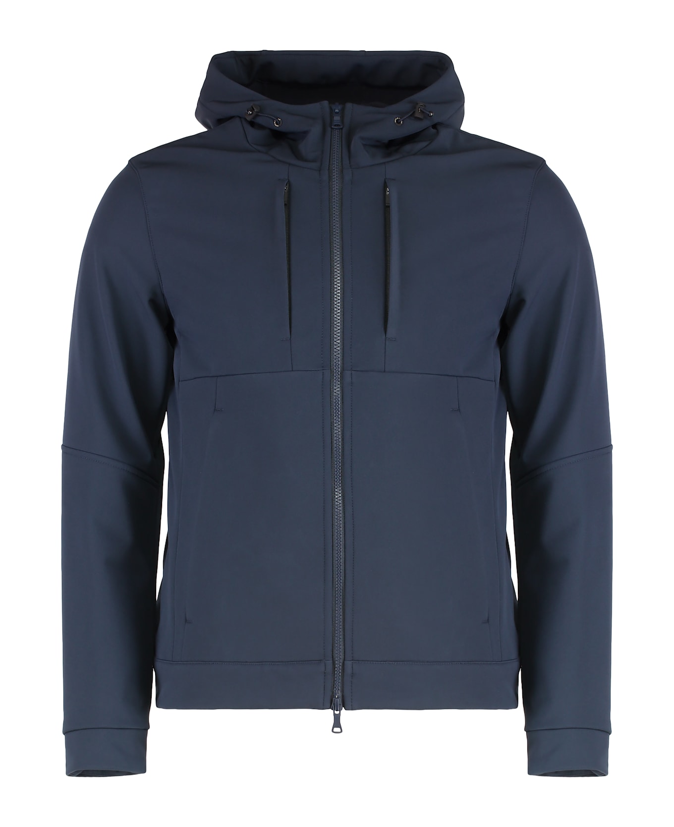 This jacket is made of re-shark shell, which combines an exterior made of typhoon® stretch and a soft fleece interior. both fabrics are made from recycled materials. adjustable hood with drawstring, four pockets, and double-slider zipper closure.