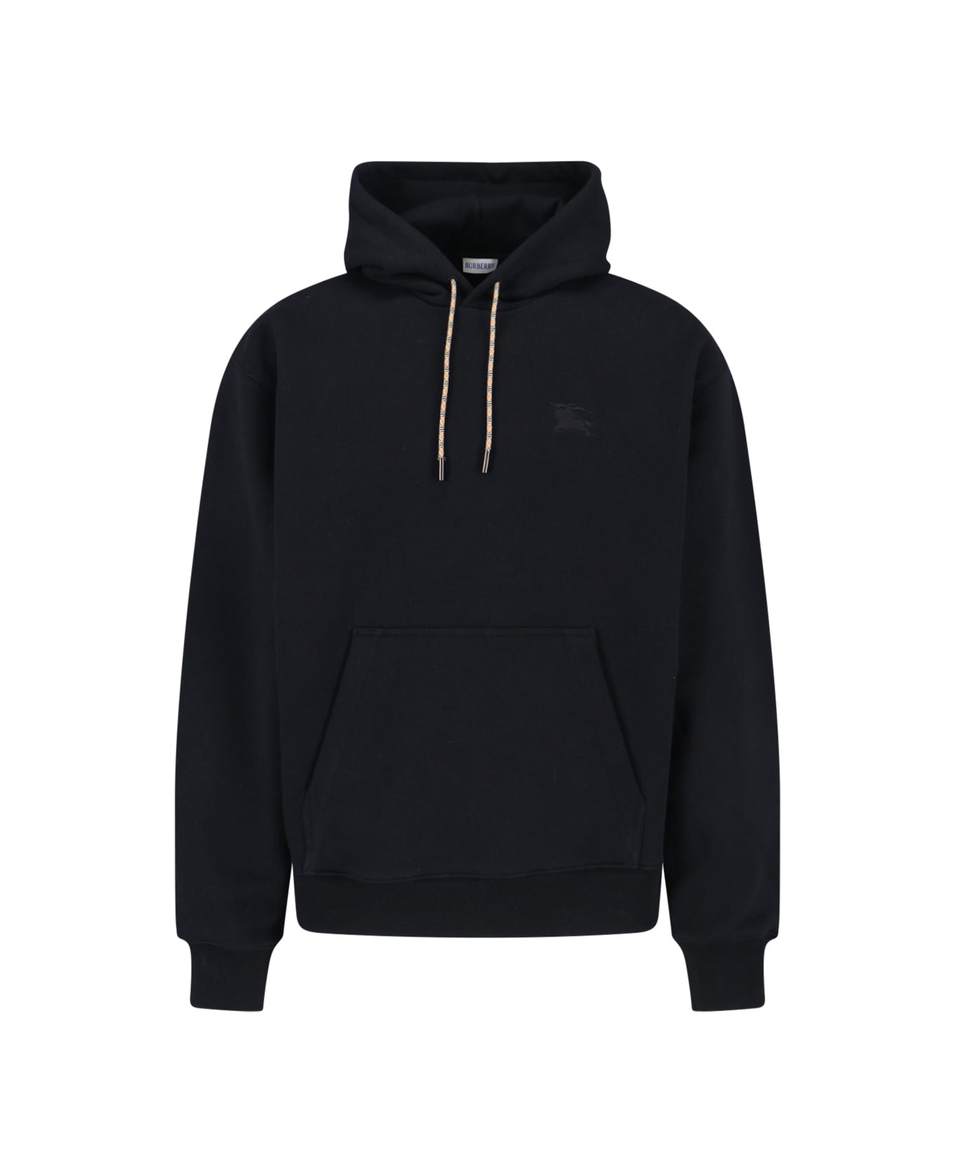 Burberry Reilly Chk Pch black cotton hoodie with drawstring hood, long sleeves, check" ribbon, check patch on the back sleeve, maxi front pocket, ribbed buckles, straight hem.