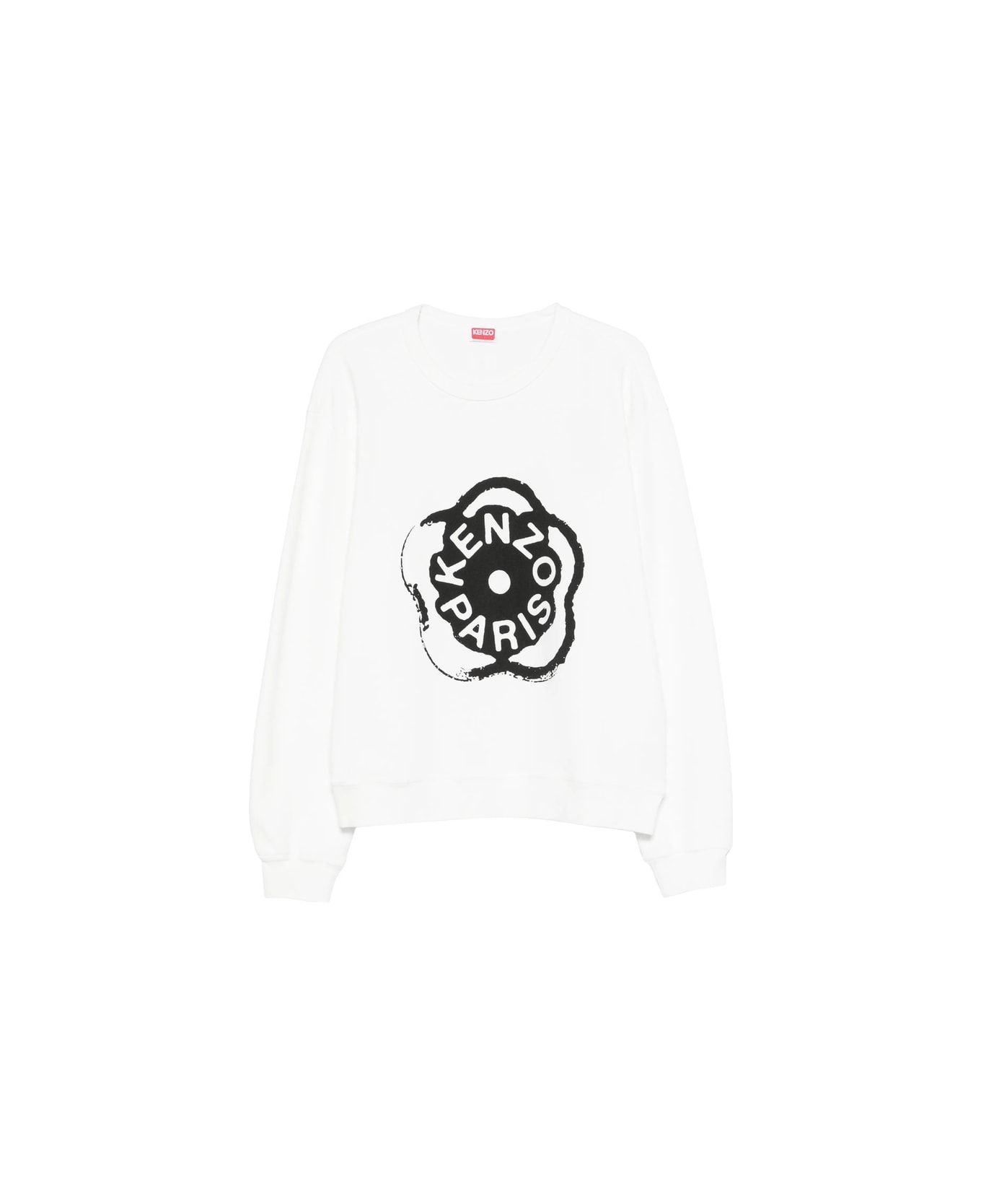 white floral-logo print crew neck long sleeves ribbed trims