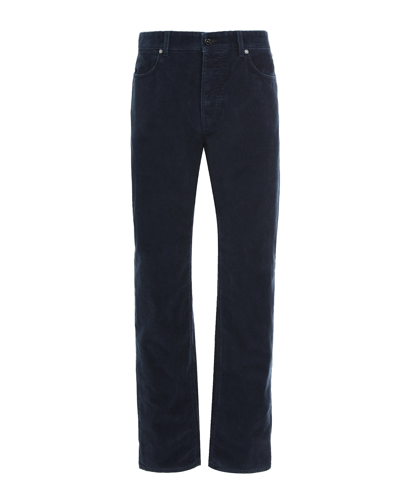 Five-pocket corduroy jeans made from indigo-dyed cotton and white polyester, featuring reinforced pockets at the back and a stone island denim research badge. rinsed finish. ideal for those looking for a mix of style and practicality in their wardrobe.