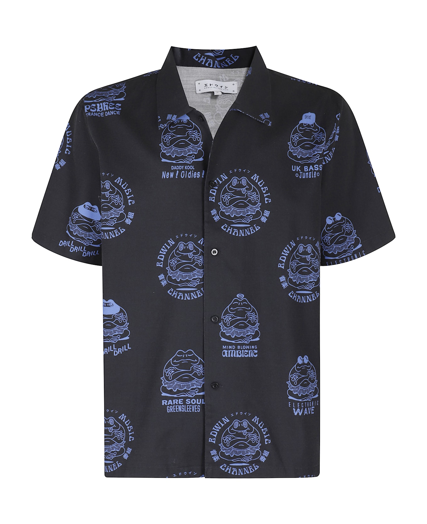 ECM SS shirt -Edwin -Black and blue color -Short sleeve -Classic collar -Center button closure -All over print