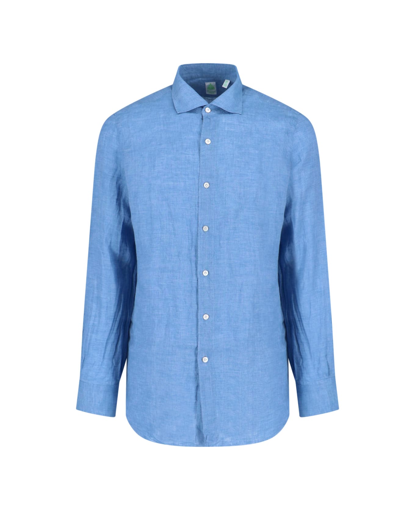 Gaeta shirt Finamore 1925 light blue linen with collar, button closure, long sleeves, button cuffs, curved hem.