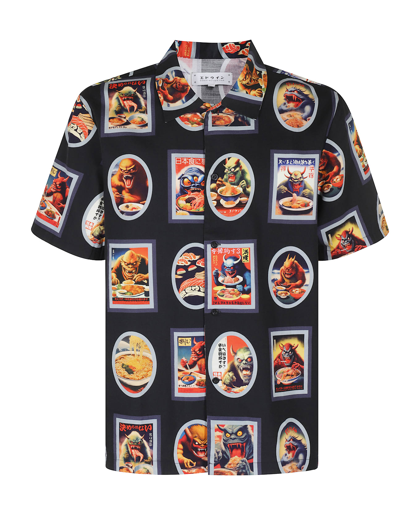 Hara Hachibu shirt -Edwin -Black and red color -Short sleeve -Classic collar -All over prints -Center button closure