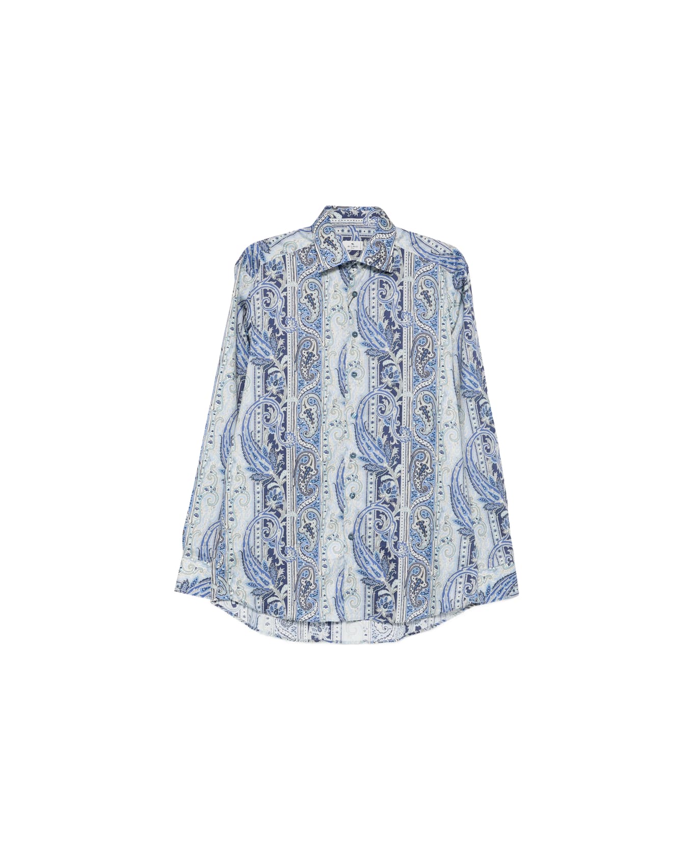 blue paisley print button fastening long sleeves buttoned cuffs classic collar