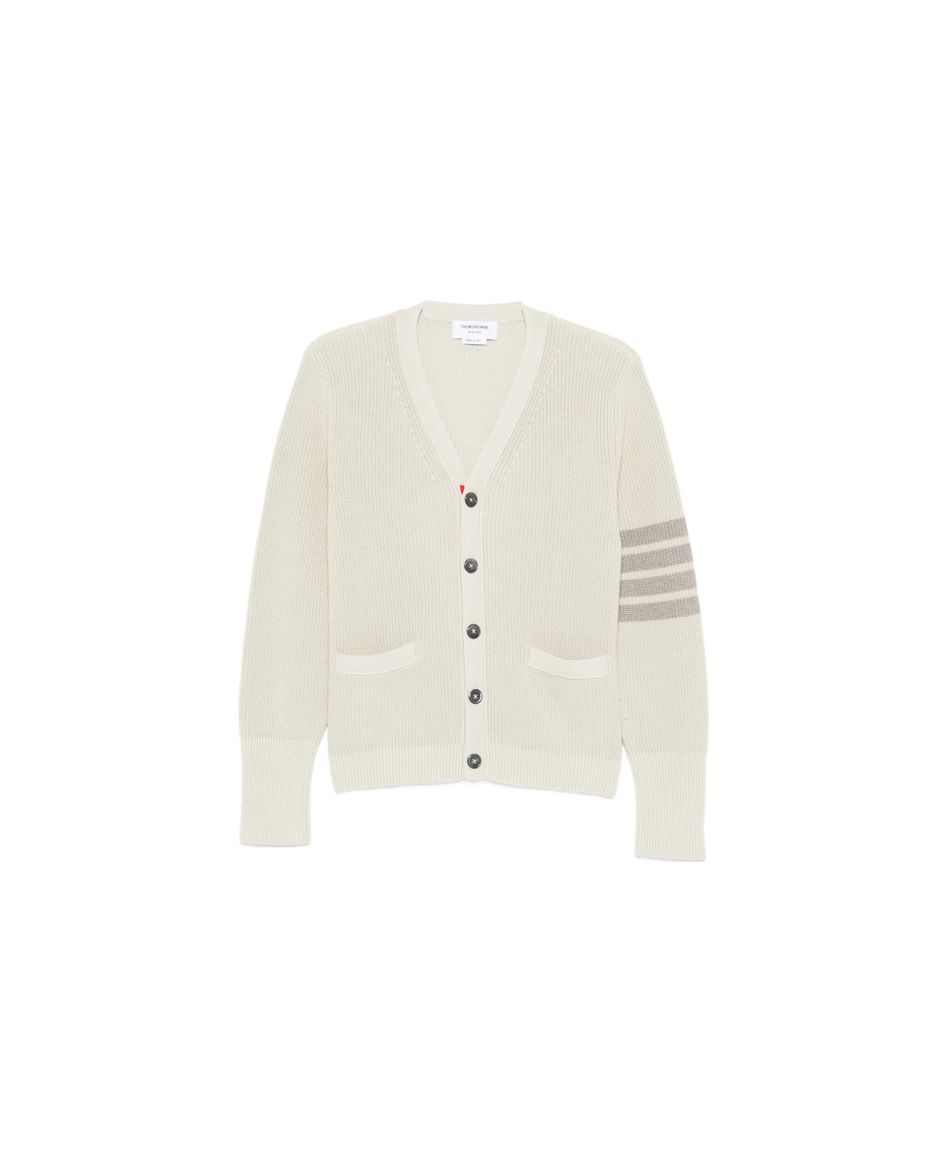off white V-neck button fastening long sleeves front pockets striped sleeve detail