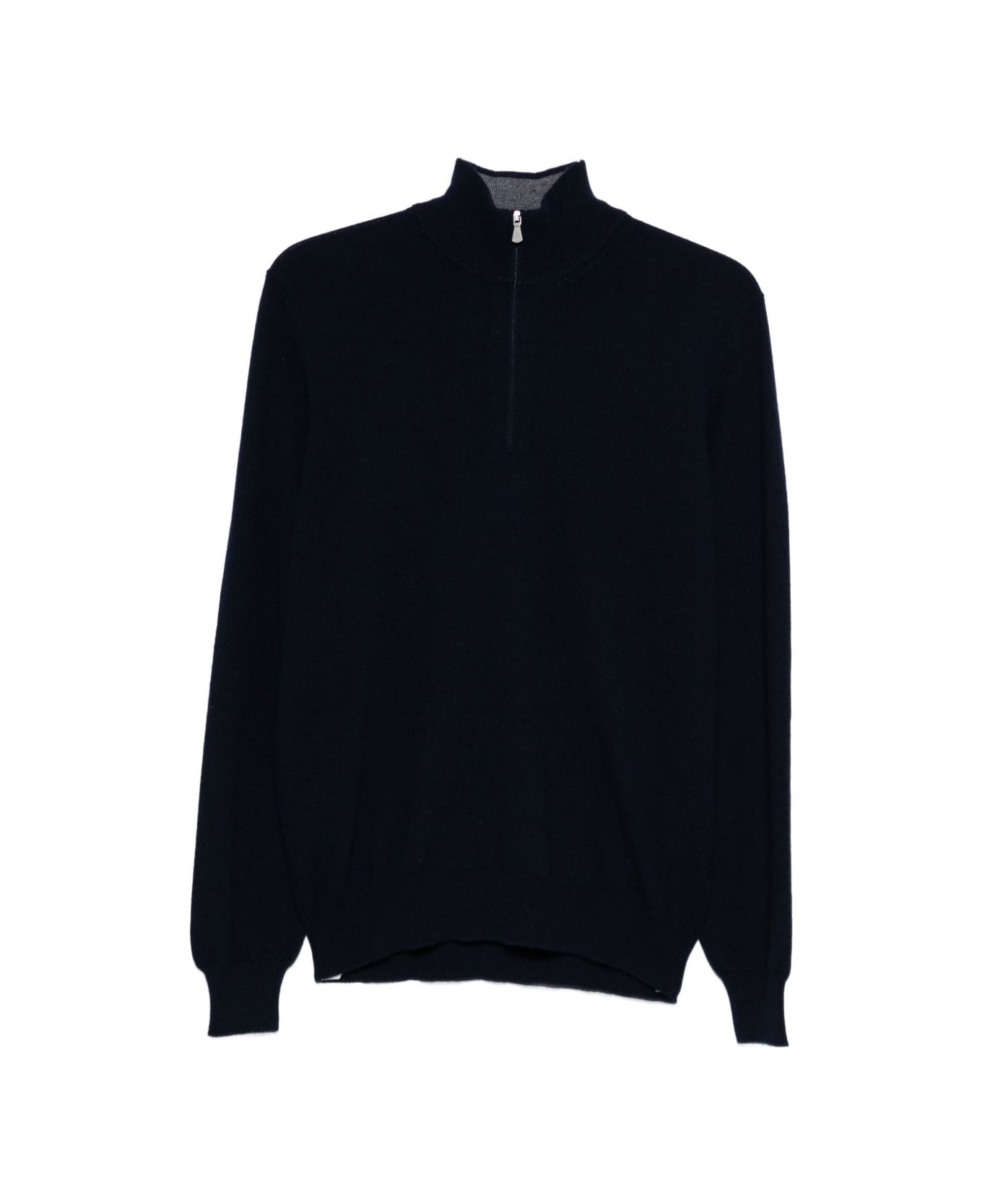BARBA Black long-sleeved cardigan, zip closure, ribbed stand-up collar