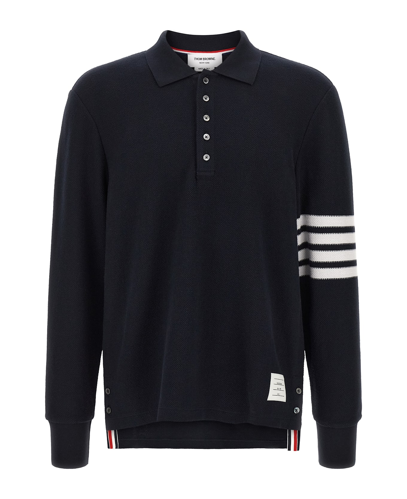 Textured piqué cotton polo shirt, front logo patch, collar and buttons, long sleeves with contrast '4 Bar' and cuffs, side slits with buttons and grosgrain 'RWB' ribbon, and asymmetrical hem. Composition: 100% cotton