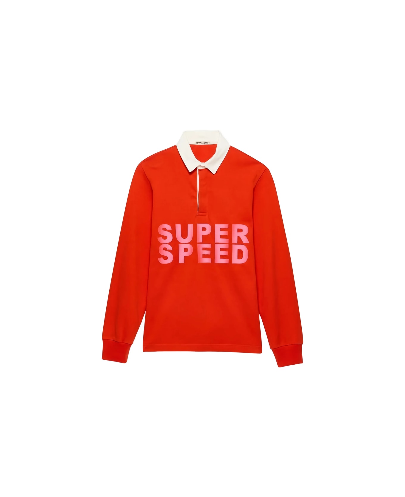 bright red cotton contrast collar front text print long sleeves ribbed cuffs