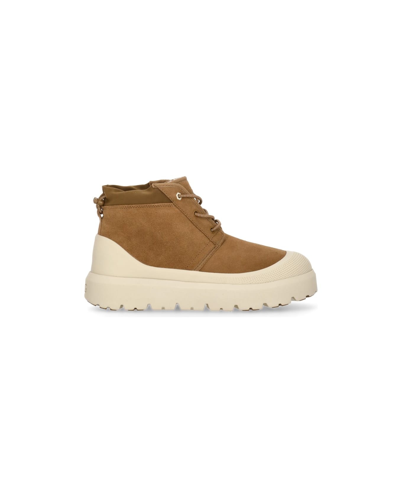 - Ugg man's brown suede leather ankle boots - Round toe - Laces fastening - Rear embossed logo - Rubber platform sole