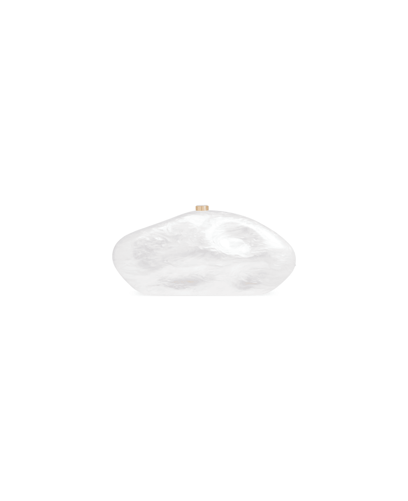 white pearlescent finish sculpted design clasp fastening gold-tone hardware