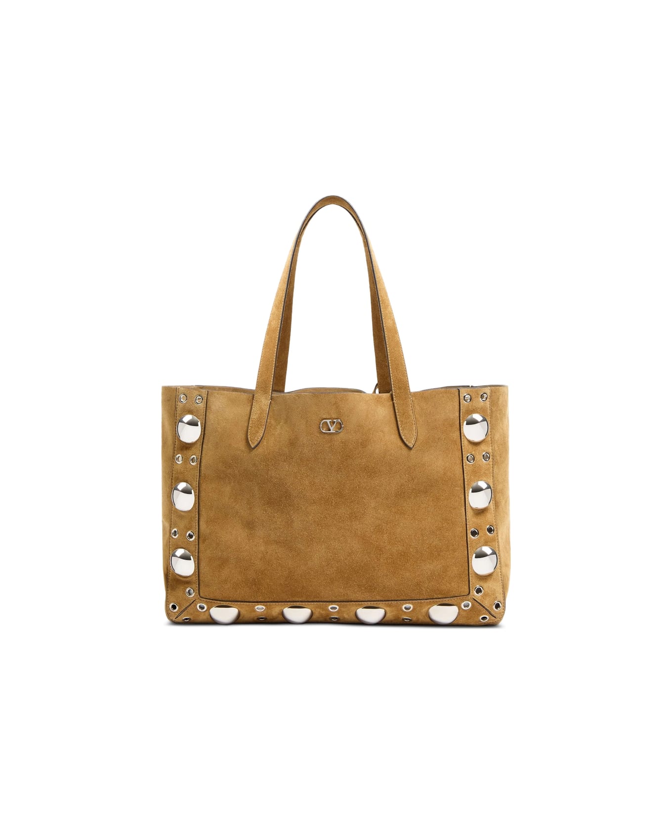 Suede bag decorated with ball studs and circular cutouts Can be carried by hand or comfortably over the shoulder thanks to the handles. Palladium-plated metal hardware Small metal VLOGO SIGNATURE detail Detachable carry bag inside Shoulder strap height (vertical height from the center of the shoulder strap to the top of the bag): 24 cm Dimensions: L40 x H30 x D13 cm Made in Italy100% Suede leather