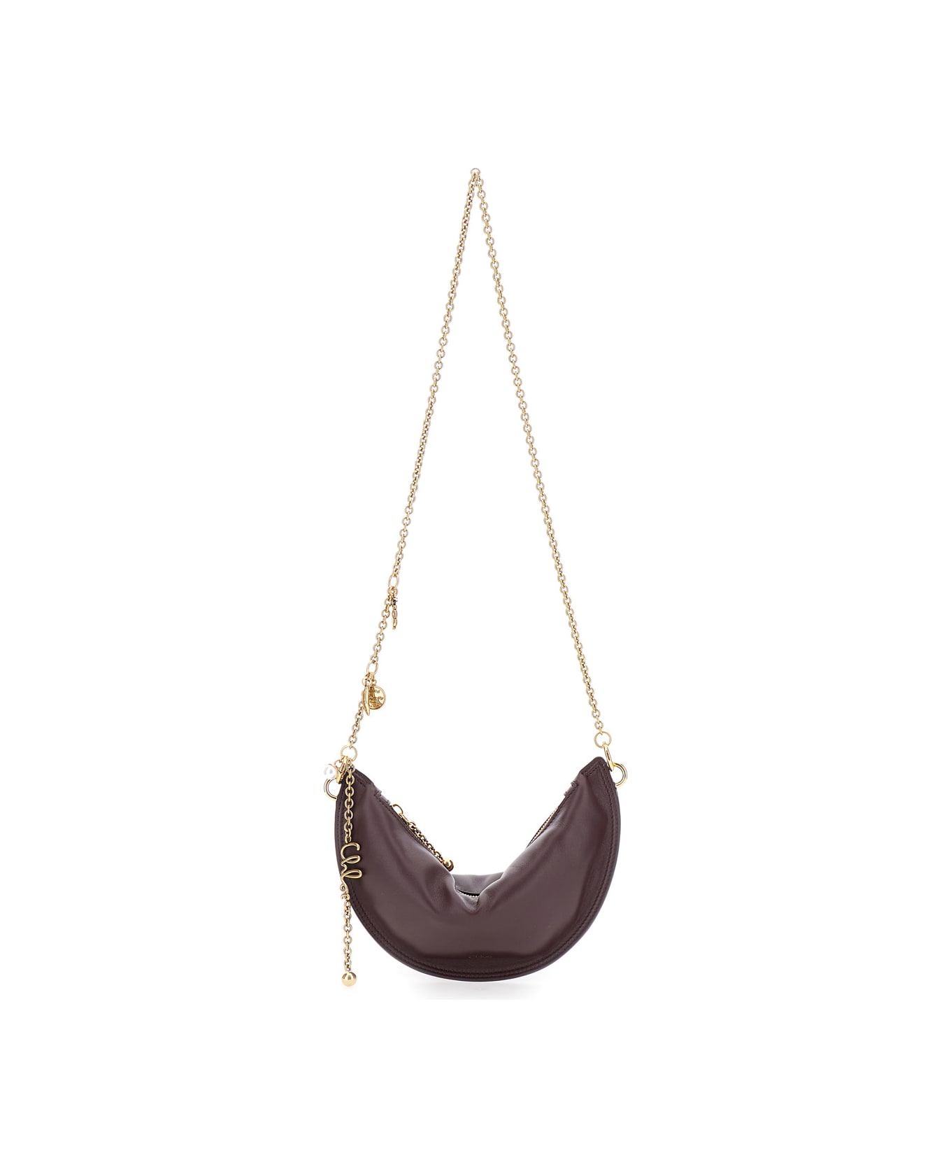 Bordeaux Shoulder Bag With Chain Shoulder Strap And Half Moon Design In Leather Woman