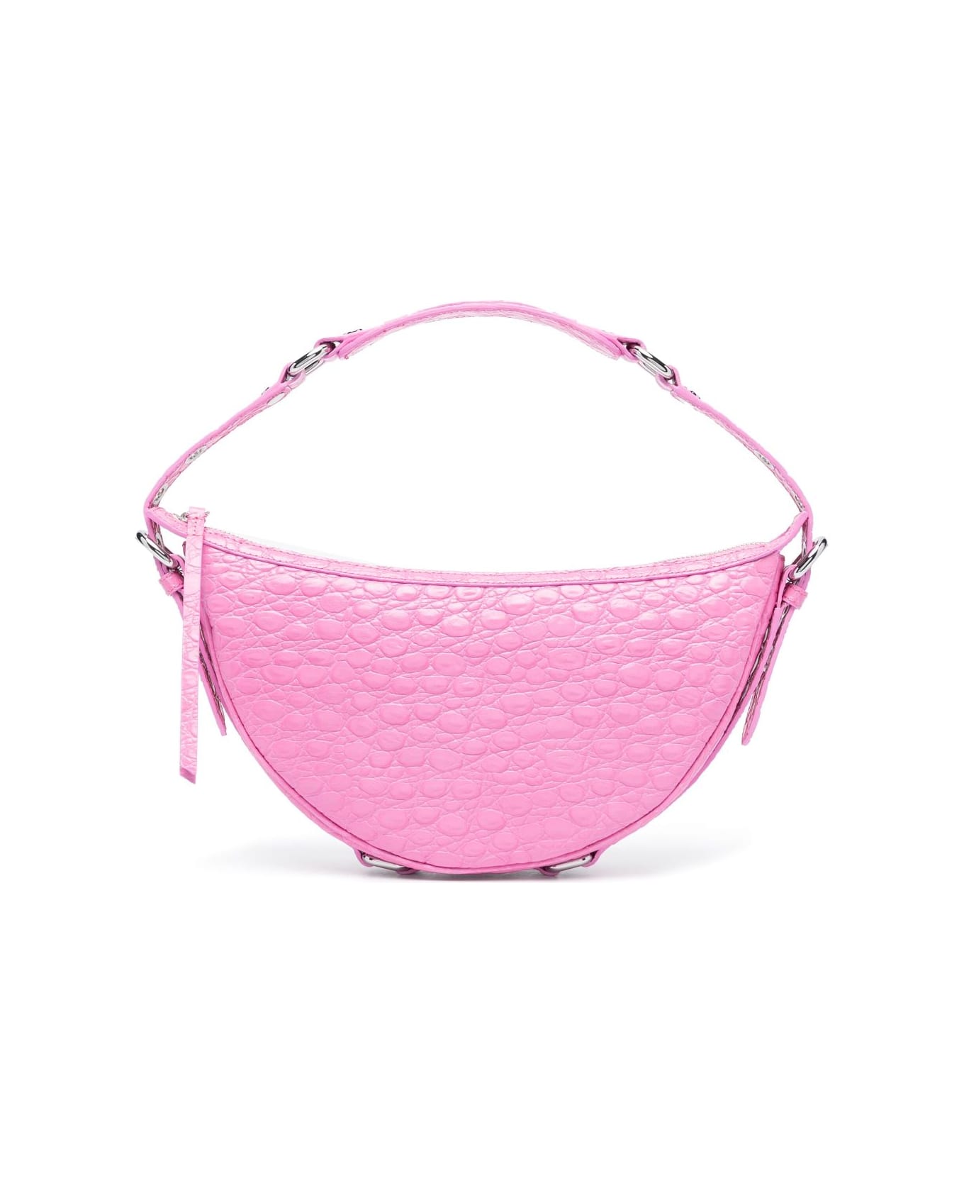 Gib embossed crocodile-effect shoulder bag from BY FAR featuring bubblegum pink, calf leather, embossed crocodile effect, silver-tone hardware, adjustable shoulder strap, curve-edge body and top zip fastening.