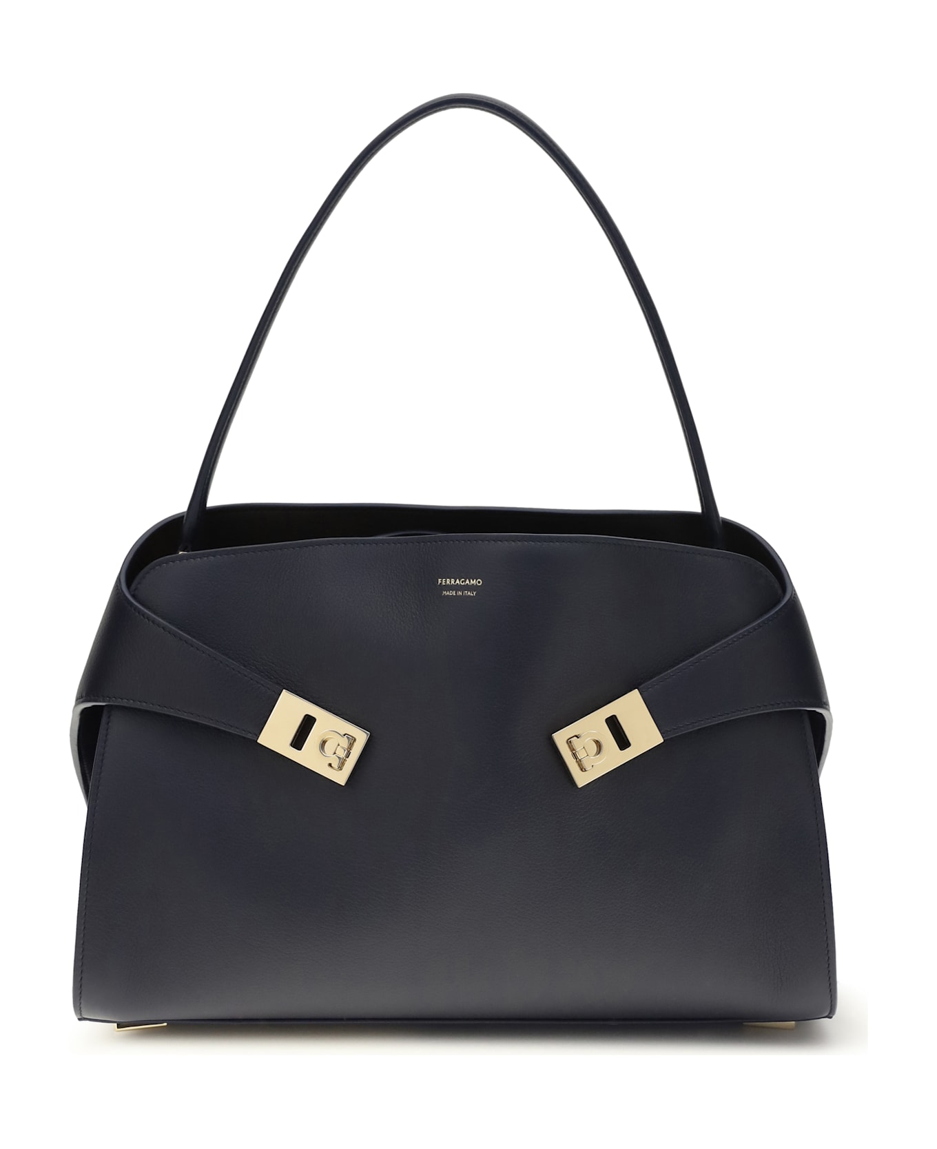 The hug soft shoulder bag by ferragamo is an elegant accessory with a single handle that creates a soft line. the iconic front buckles and magnetic closure with t-bar open onto a central zipped compartment and two large side spaces. wearable by hand, on the shoulder, or crossbody thanks to the adjustable and removable shoulder strap, it features contrasting interiors for a refined color-block effect. Composition: 100% % Calf Leather Bos Taurus