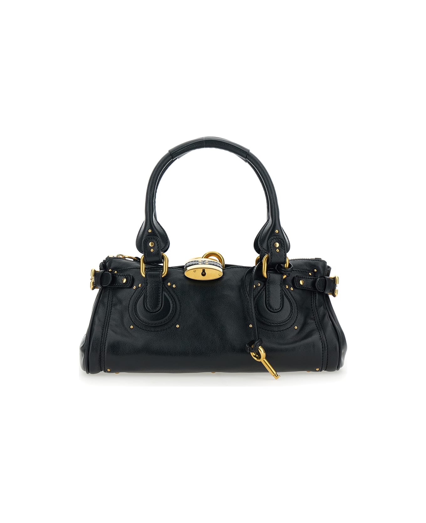 Black Shoulder Bag With Oversized Padlock And C-shaped Buckles In Grainy Leather Woman
