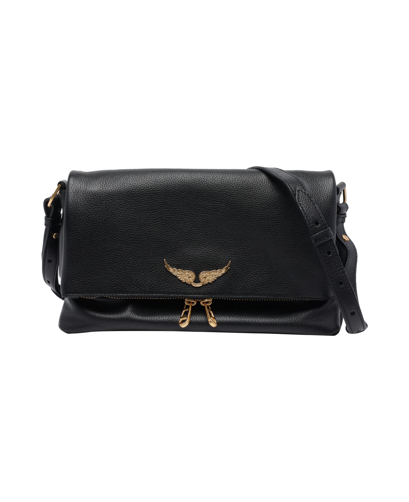 Zadig&Voltaire black Rocky shoulder bag, 2 compartments, one compartment with magnetic closure and one compartment with zip pocket, external pocket with magnetic closure, removable chain shoulder strap, logo
