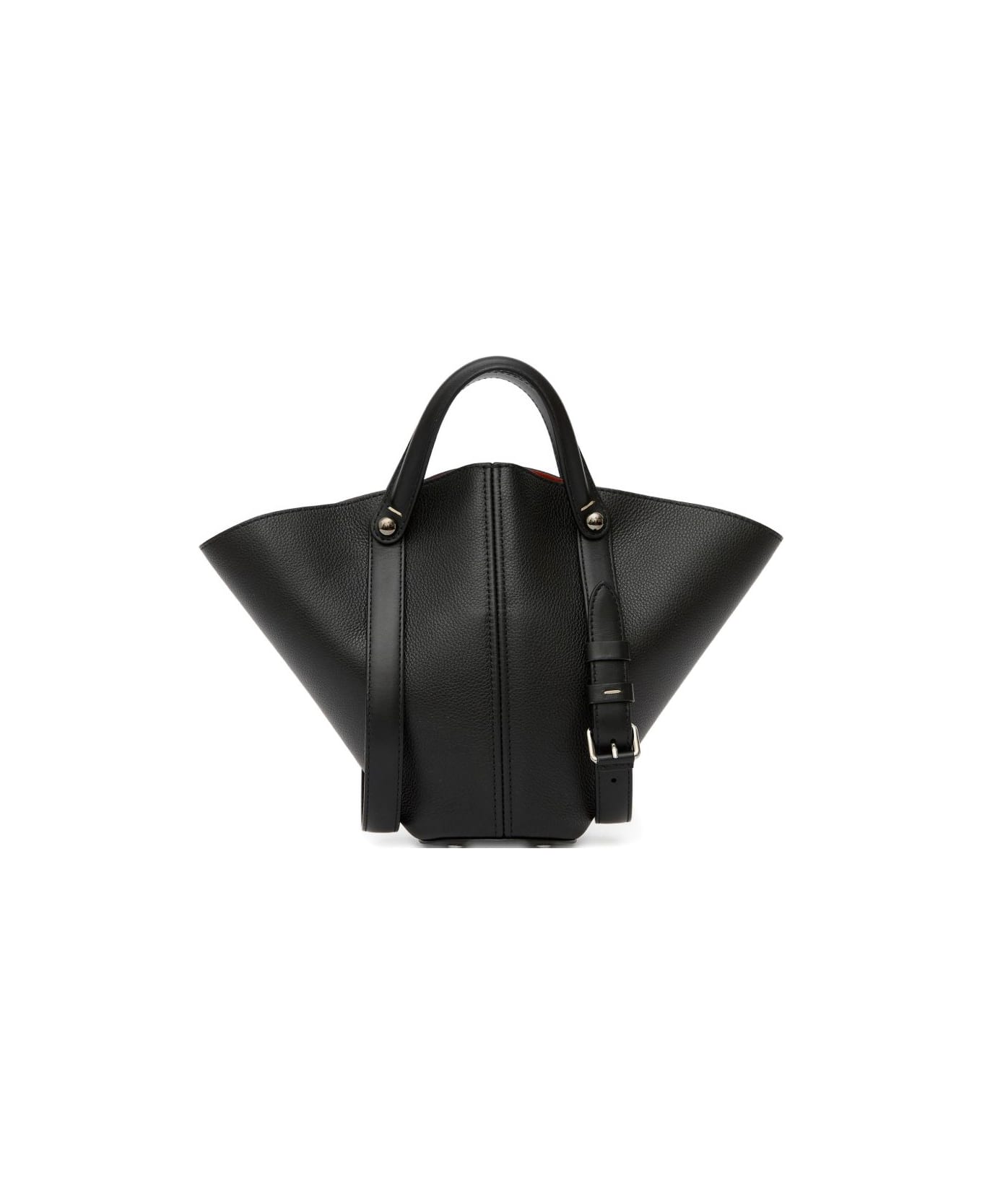 black pebbled texture four stitches at the back studded base top handles detachable adjustable shoulder strap Composition: Furs & Skins->calf Leather100. , 0%