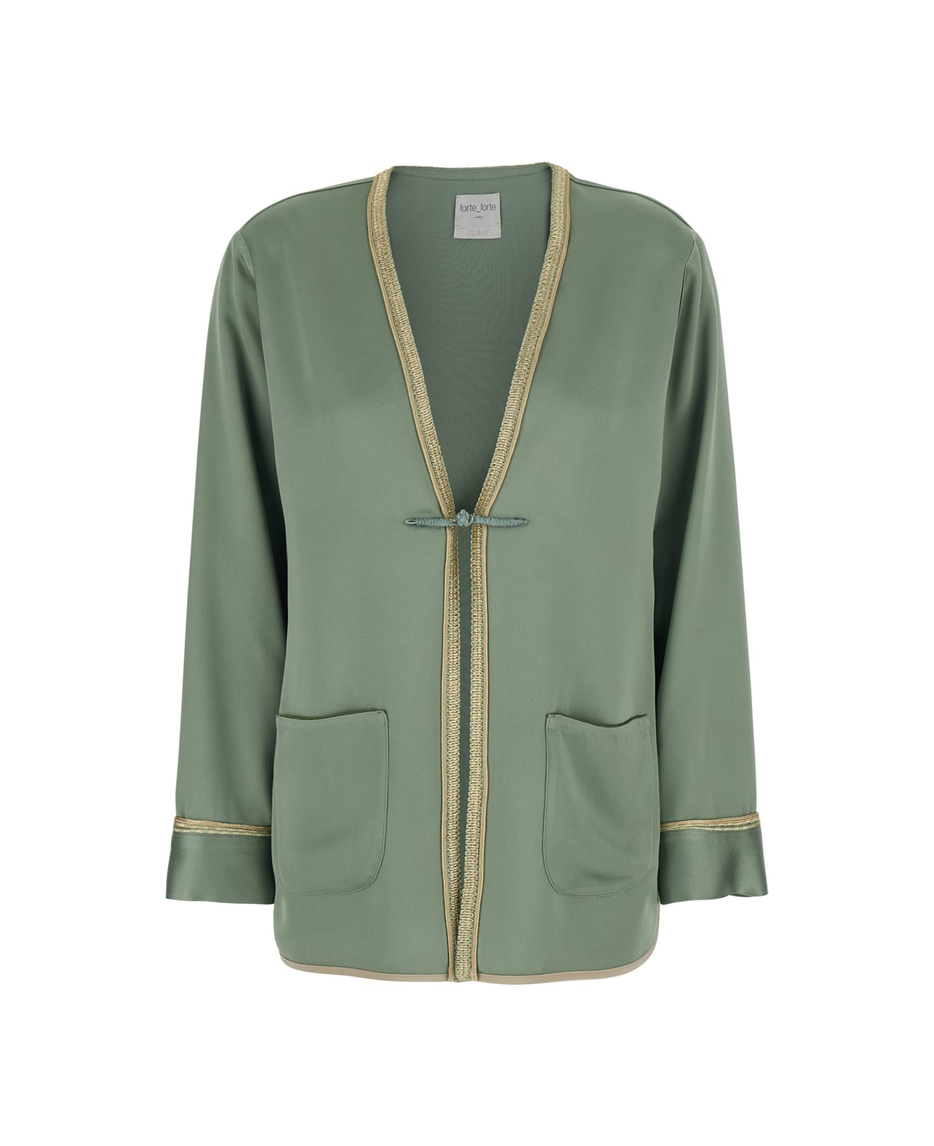 Jacket Green V neck Dropped shoulders Front toggle closure Two front patch pockets Contrasting trim Straight hem Viscose blend Relaxed fit