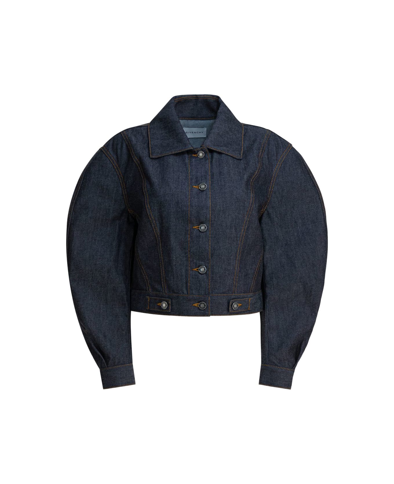 blue classic collar long balloon sleeves button fastening front flap pockets contrast stitching Composition: 100% Cotton