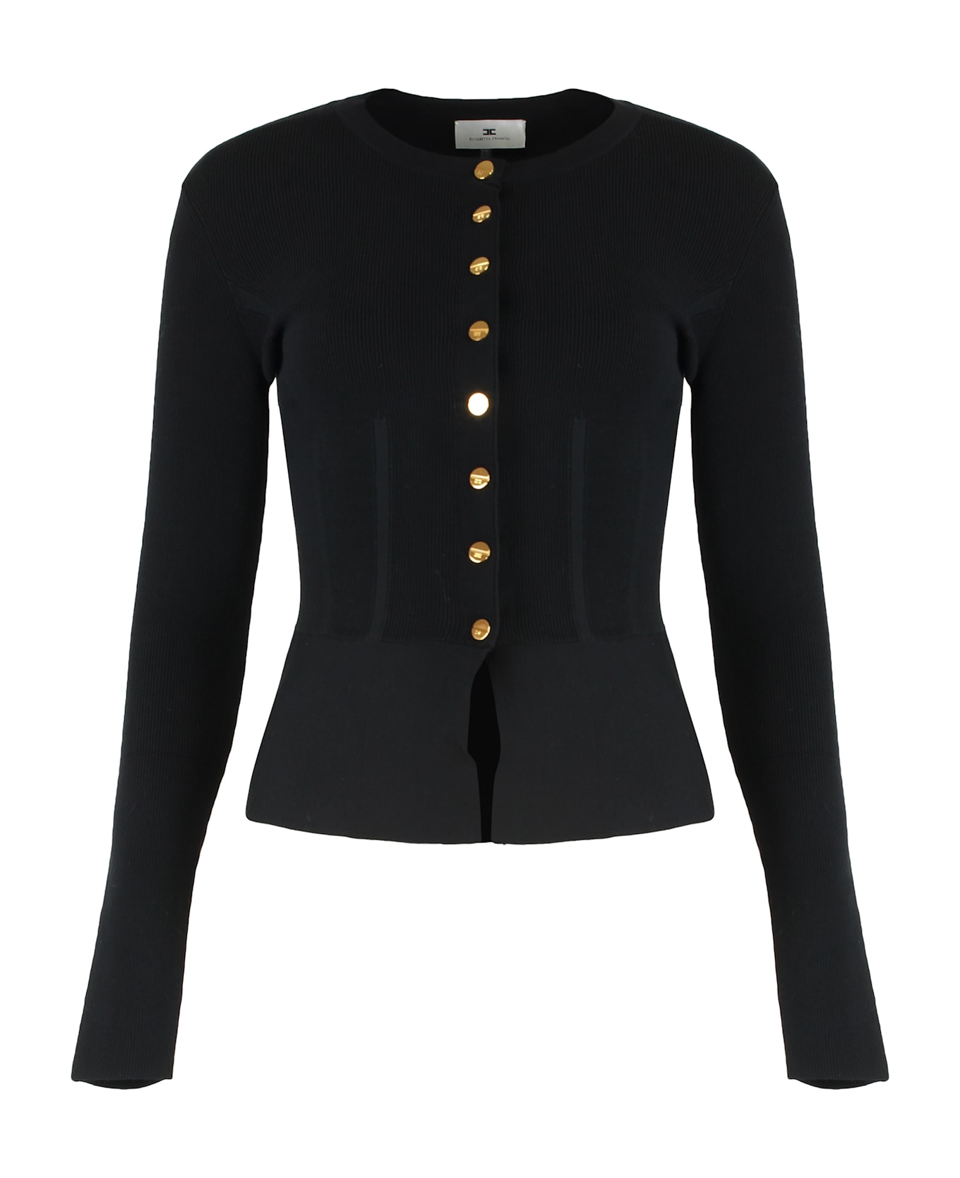 Sweater with a fitted silhouette. the garment has padded shoulders, a round neckline, and long sleeves. the golden metal buttons with logo add brightness. 62% viscose, 24% polyester, 14% polyamide Composition: 62% % Viscose, 24% % Polyester, 14% % Polyamide