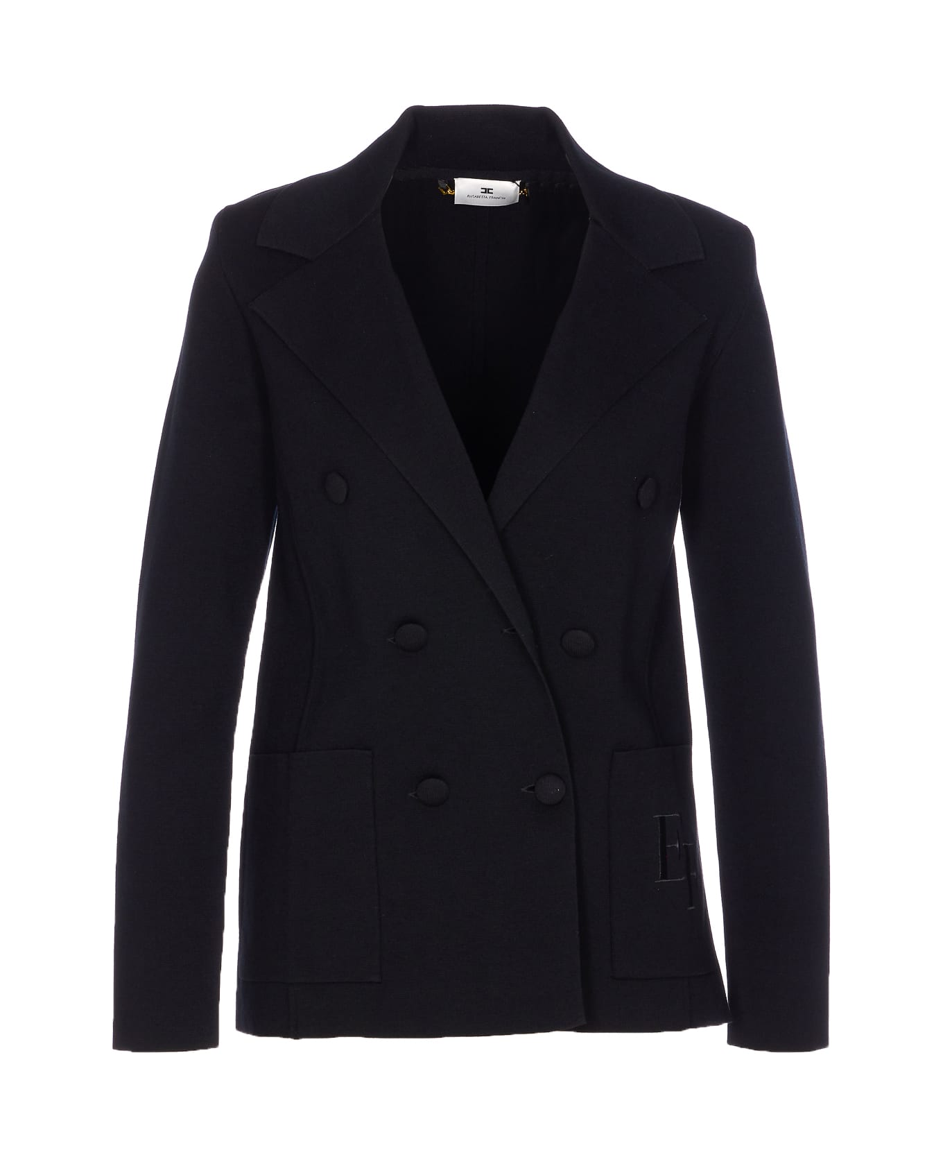 Elisabetta Franchi black cardigan with frontal double breasted buttons closure, long sleeves, reverse detail, long sleeves, pockets, embroidered tone on tone logo on the front, reinforced shoulder, knitted Composition: 60% Viscose, 23% Polyester, 17% Polyamide