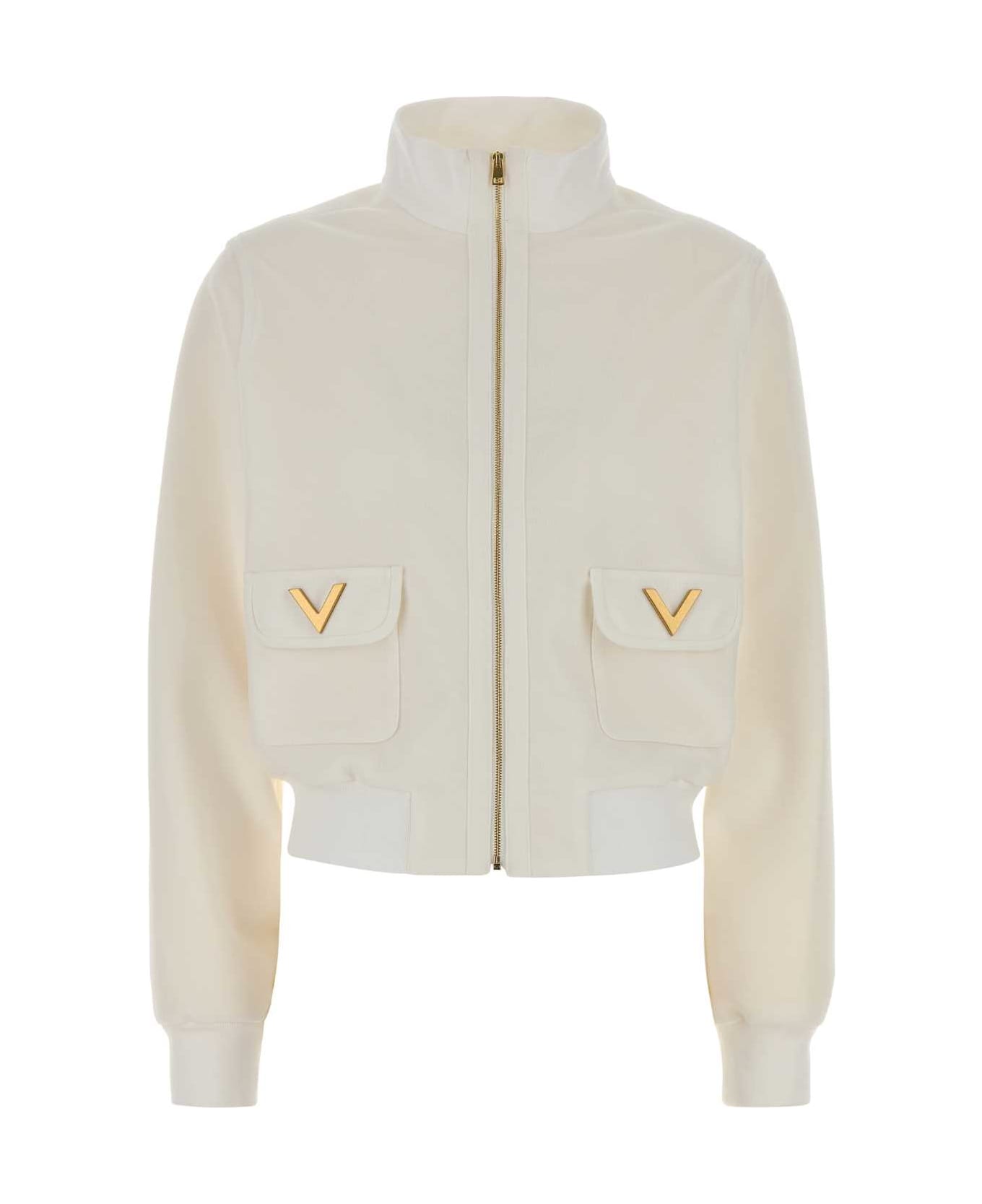 White Stretch Gabardine Bomber Jacket from Valentino Garavani
