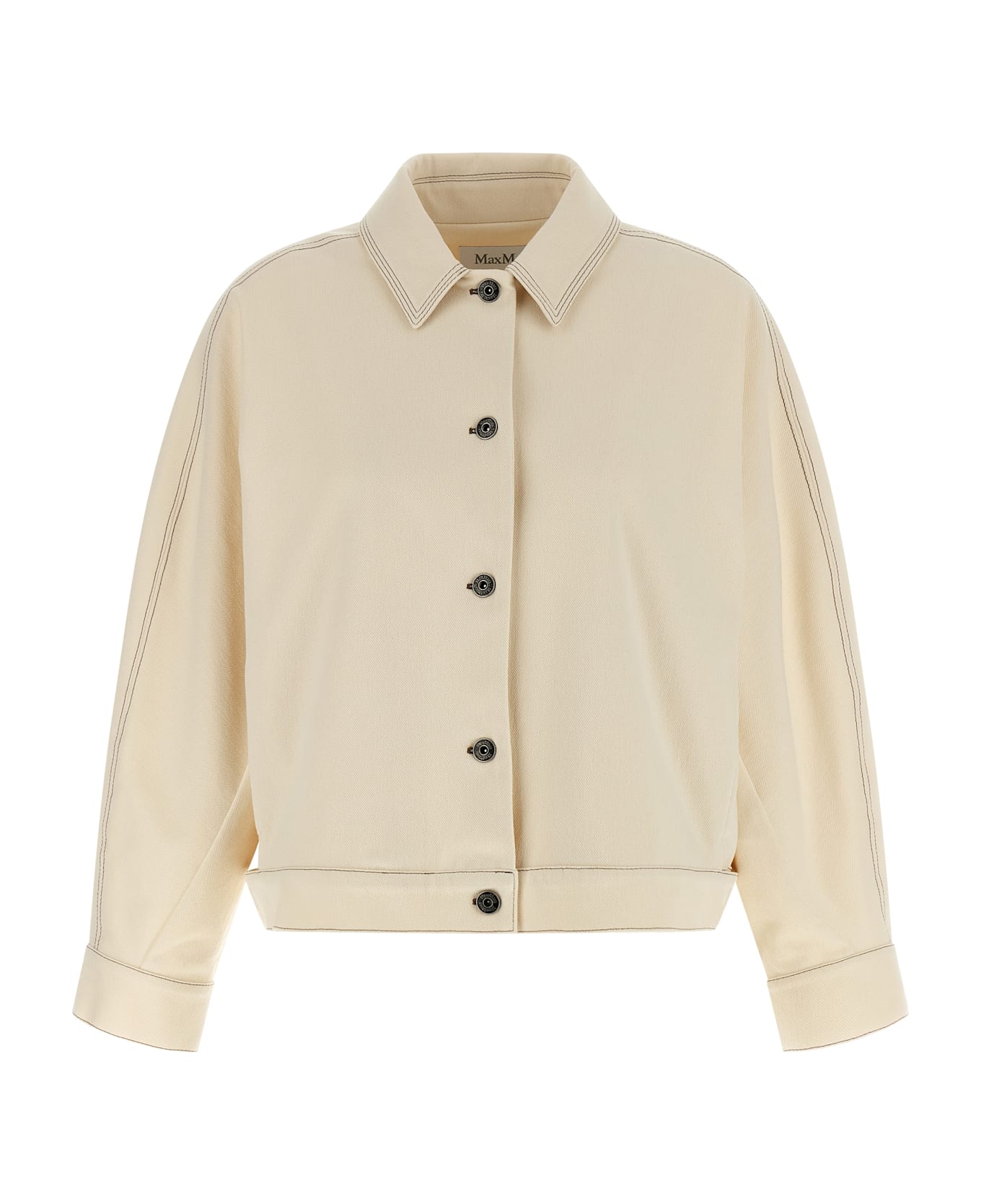 'MxpNettare' denim-effect cotton blend jersey overshirt, unlined, contrast stitching, shirt collar, front button closure, pockets, long kimono sleeves with cuffs. Composition: 57% cotton 36% polyester 7% elastane