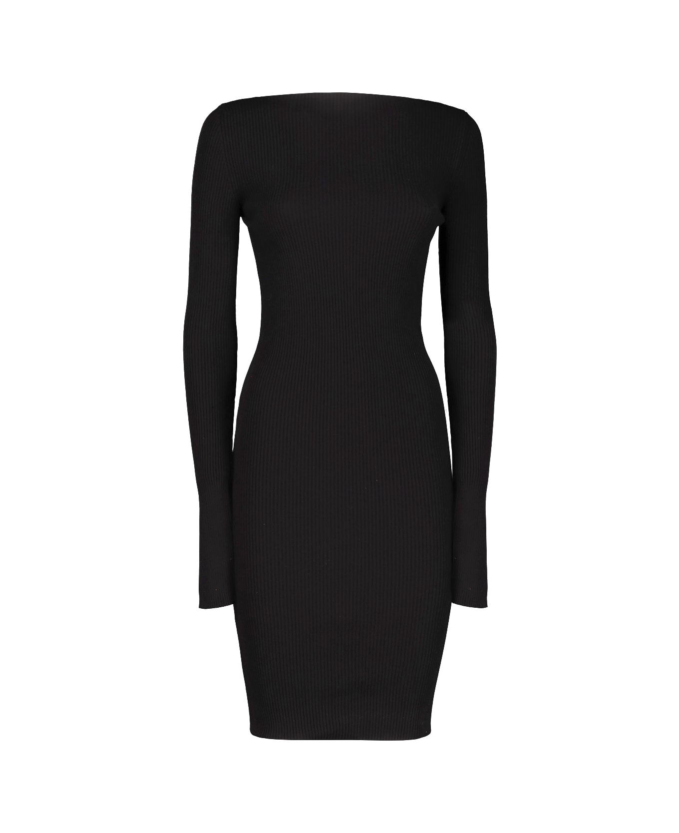 Rick Owens Al rib dress in Viscose, knee length, boat neck, extended cuffs, cutout at back. GTIN code: RP02E4616 RIBVI