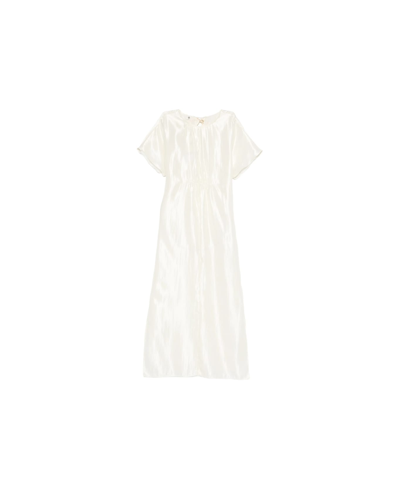light cream gathered detail short sleeve round neck straight hem