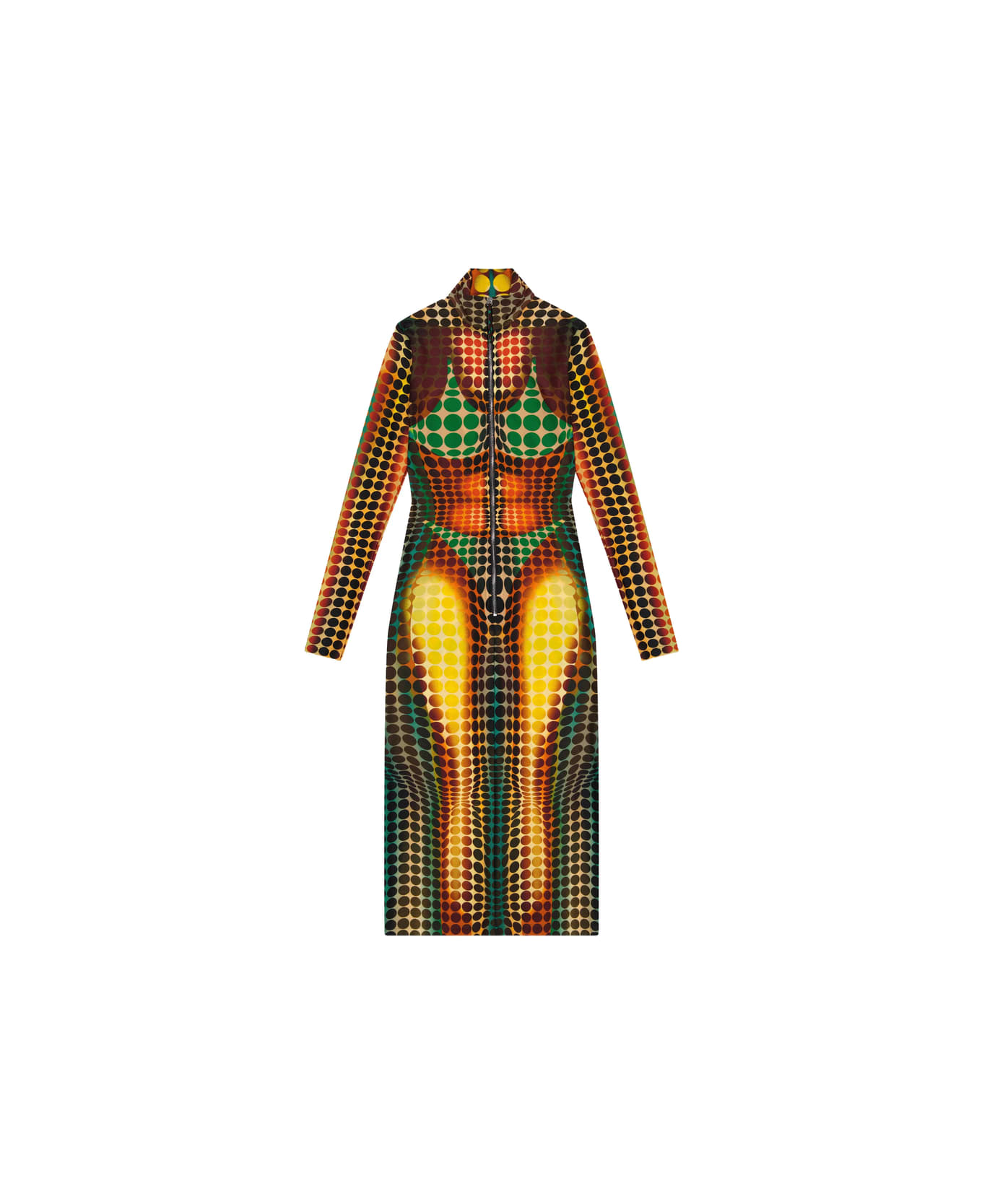 orange dot print high neck long sleeves zip closure