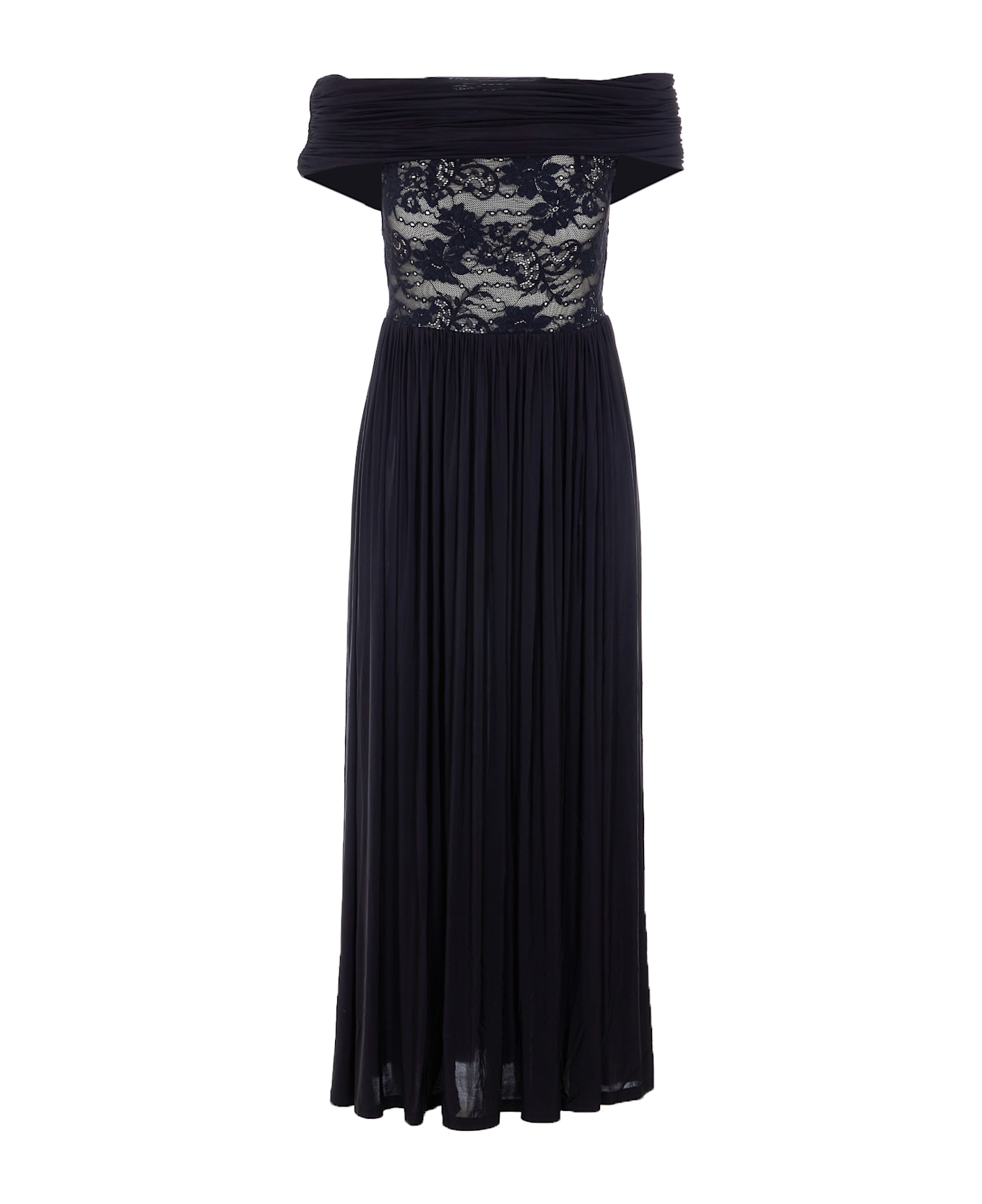 Zimmermann black Rebellion dress,off shoulder, zip and hook closure, flared model, lace bustier detail Composition: 90% Viscose, 10% Elastane, 81% Polyester, 19% Elastane