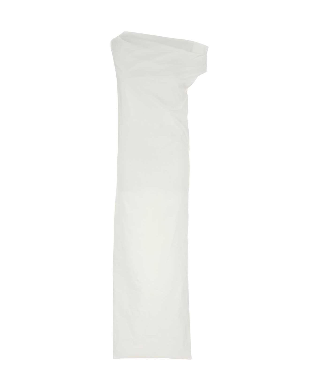 White Stretch Poplin Tiche One-shoulder Dress