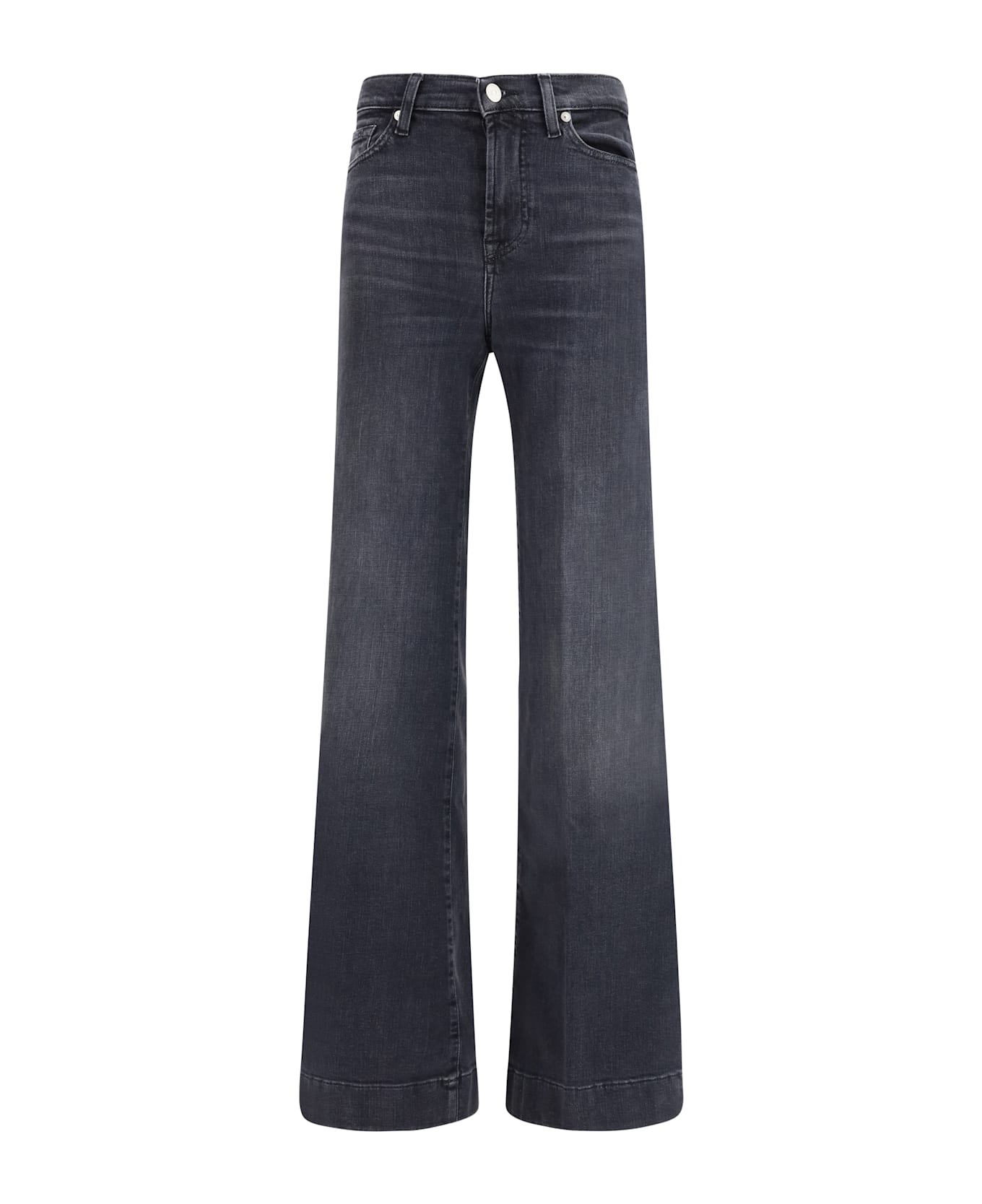The modern dojo jeans in slim illusion by 7for reinterpret the iconic flared silhouette with a modern edge. designed with a high-rise waist, they feature a wider flare than the original dojo style, while remaining fitted through the hips and thighs before opening into a dramatic flare at the hem. the soft, sculpting denim smooths, lifts and enhances the figure, delivering comfort and support like a true denim embrace. finished with a zip and button fastening and a clean back pocket design.