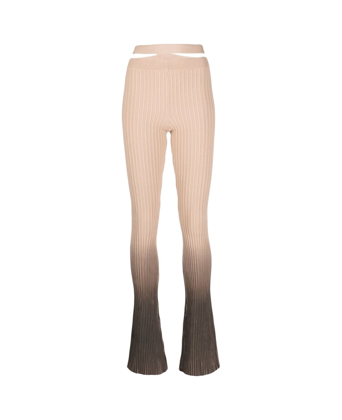 ribbed flared trousers from ANDREADAMO featuring brown, stretch-design, ombré effect, fine ribbed, high-waisted, cut-out detailing and flared.