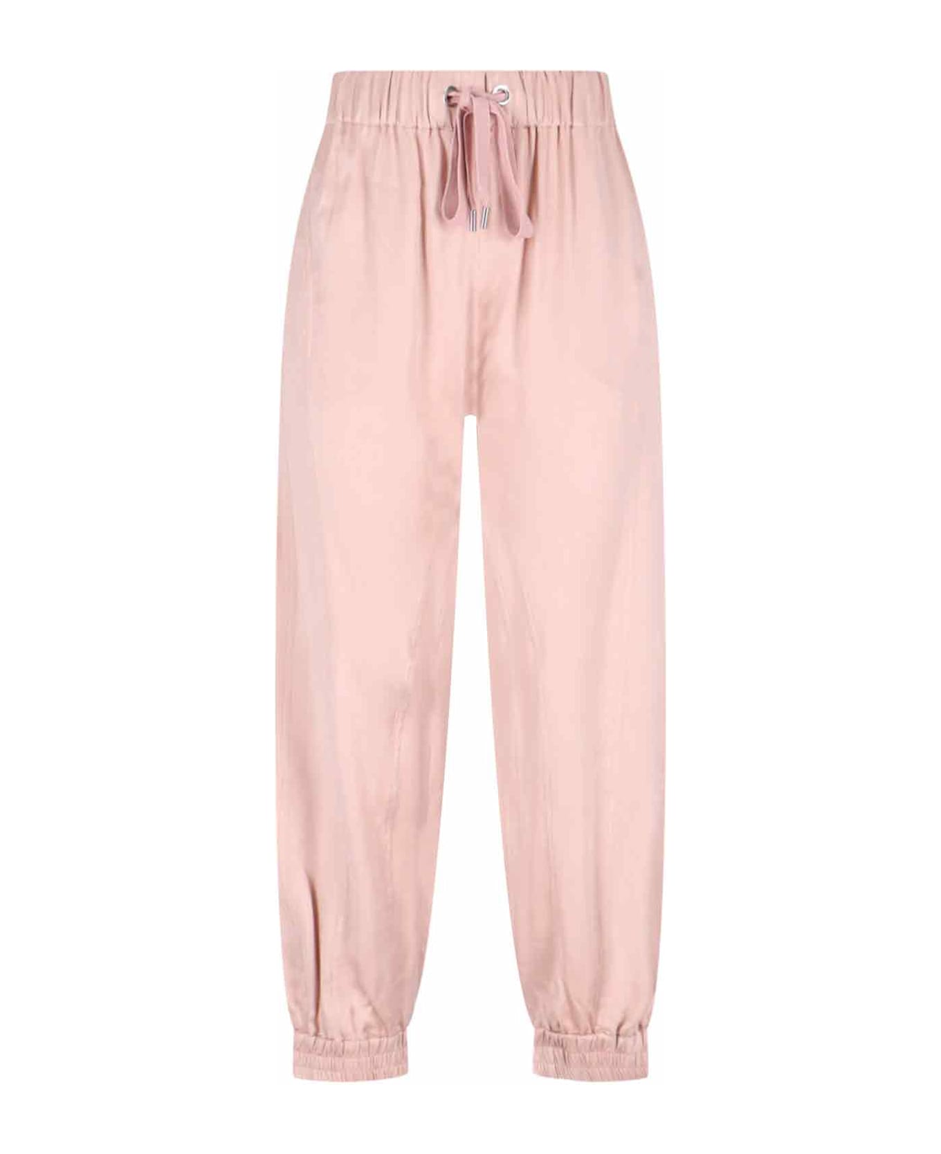 Sa Su Phi Valentina pink silk blend sports pants with high elastic waist, drawstring closure, two side pockets, elastic details at the hem, straight leg. Composition: 57% Silk, 43% Viscose