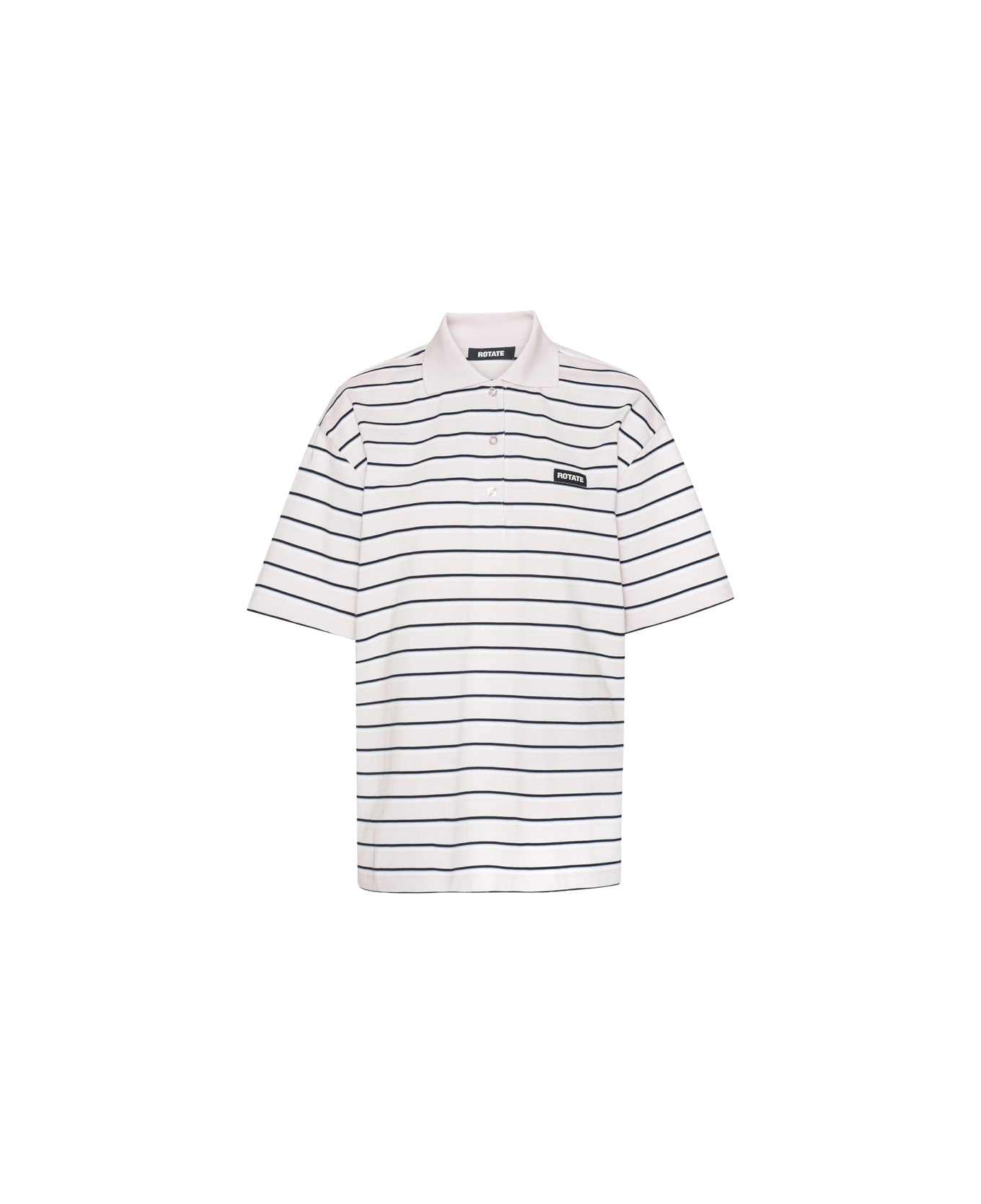 pale pink striped logo patch polo collar short sleeves partial button fastening