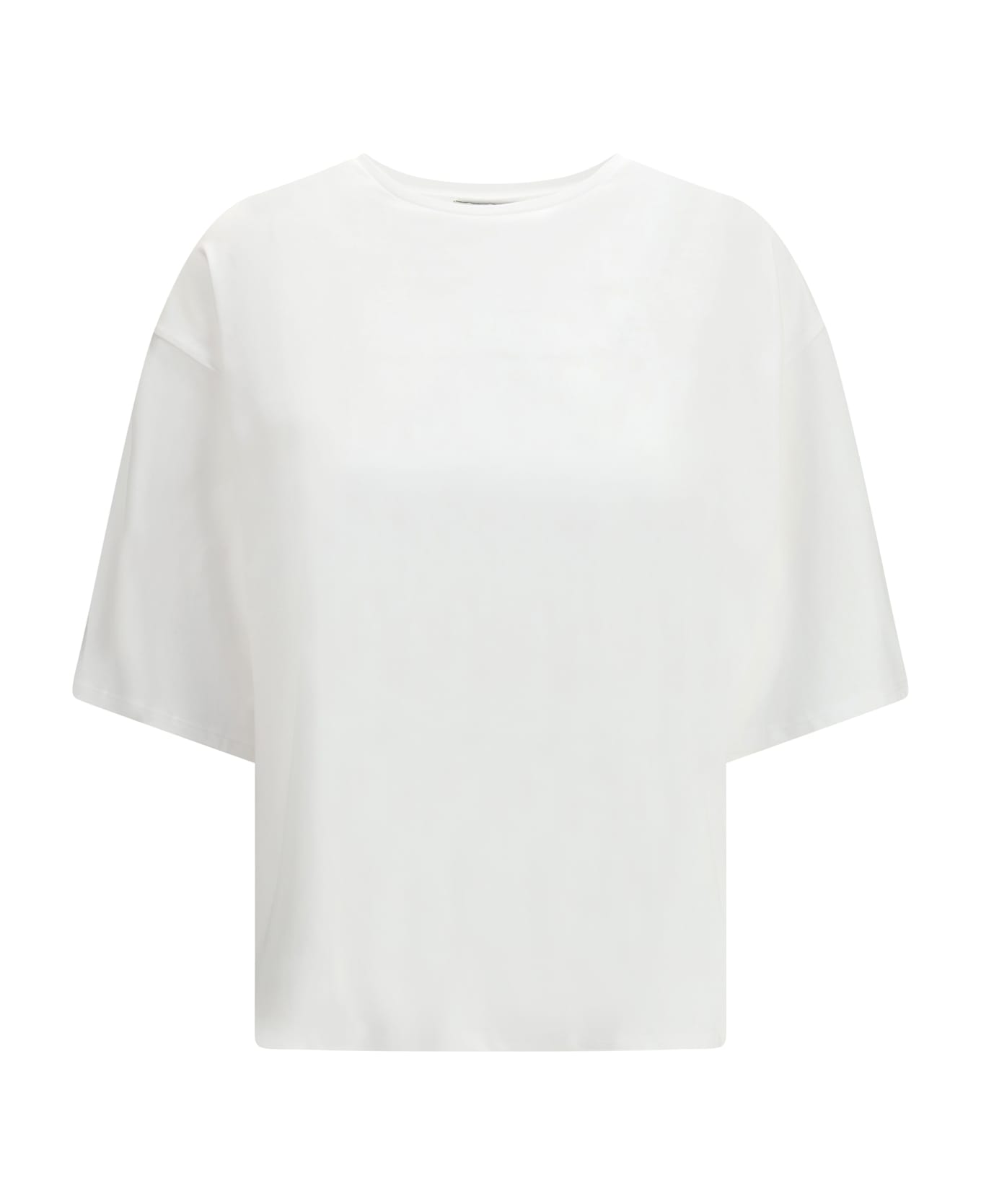 The osis t-shirt by loulou de saison, clean and effortless, featuring a classic crew neckline and dropped shoulders that shape a relaxed silhouette. the short sleeves with slouched shoulders enhance its modern, easy-going appeal, making it a versatile everyday essential.