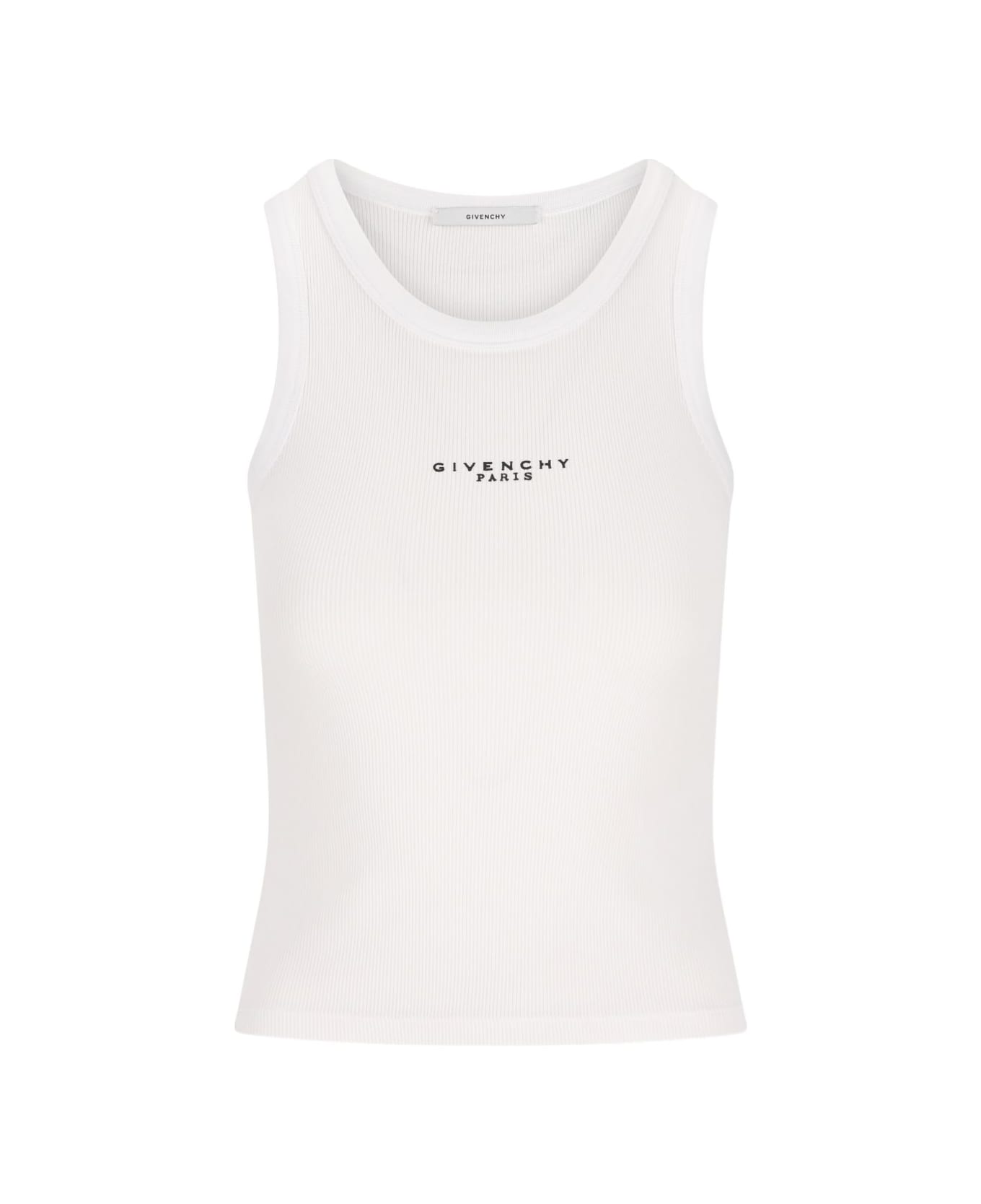 white ribbed knit logo print round neck sleeveless Composition: 98% Cotton, 2% Elastane