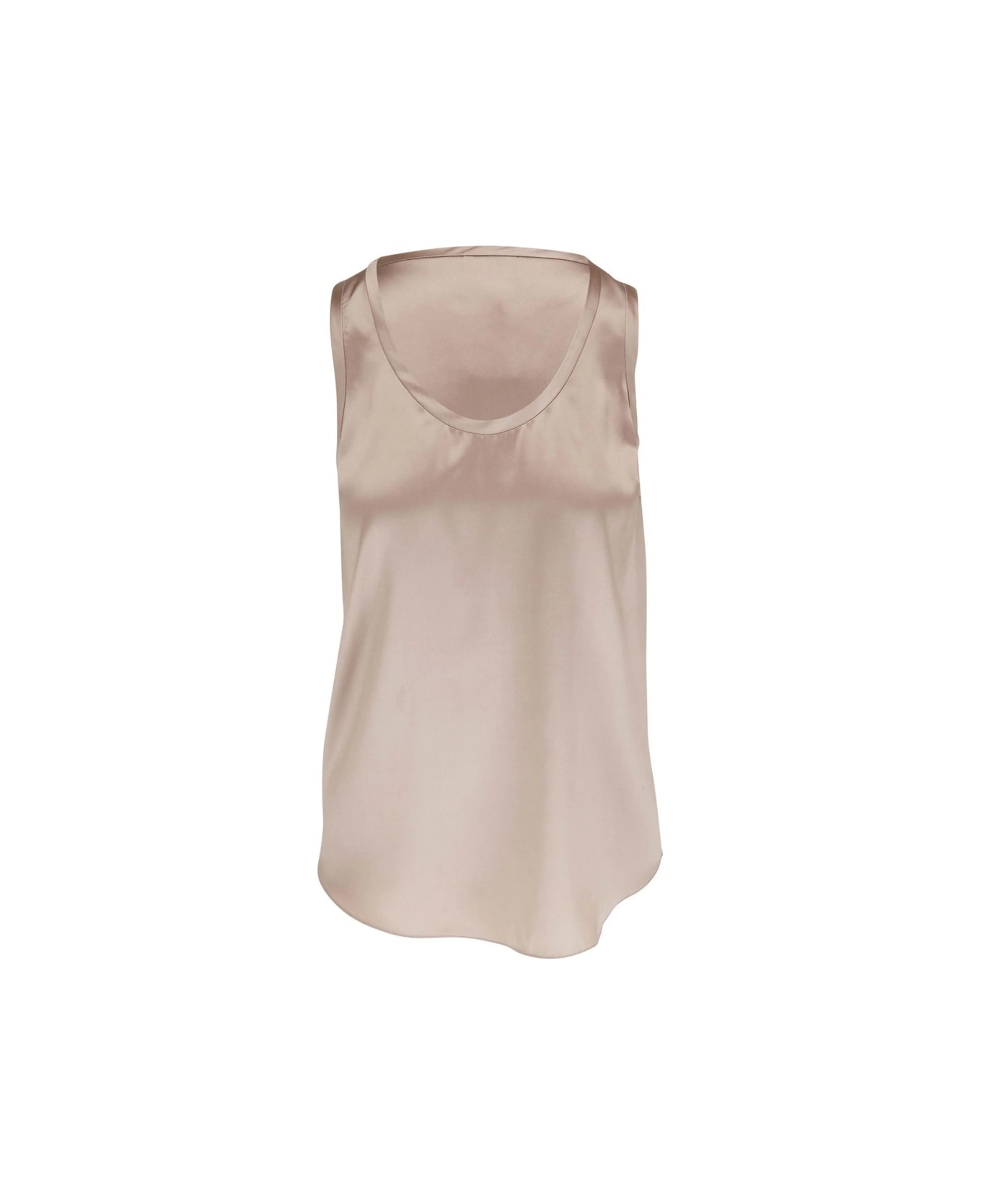 scoop-neck silk vest from BRUNELLO CUCINELLI featuring light pink, scoop neck, sleeveless and curved hem.