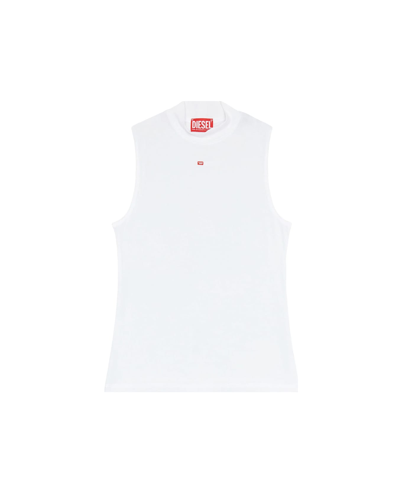 optical white stretch-design embroidered logo to the front mock neck sleeveless straight hem