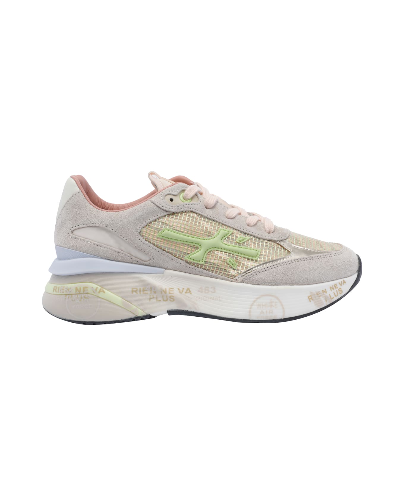 Premiata multicolor Moerund sneakers, laces closure, suede leather upper, logo, used effect