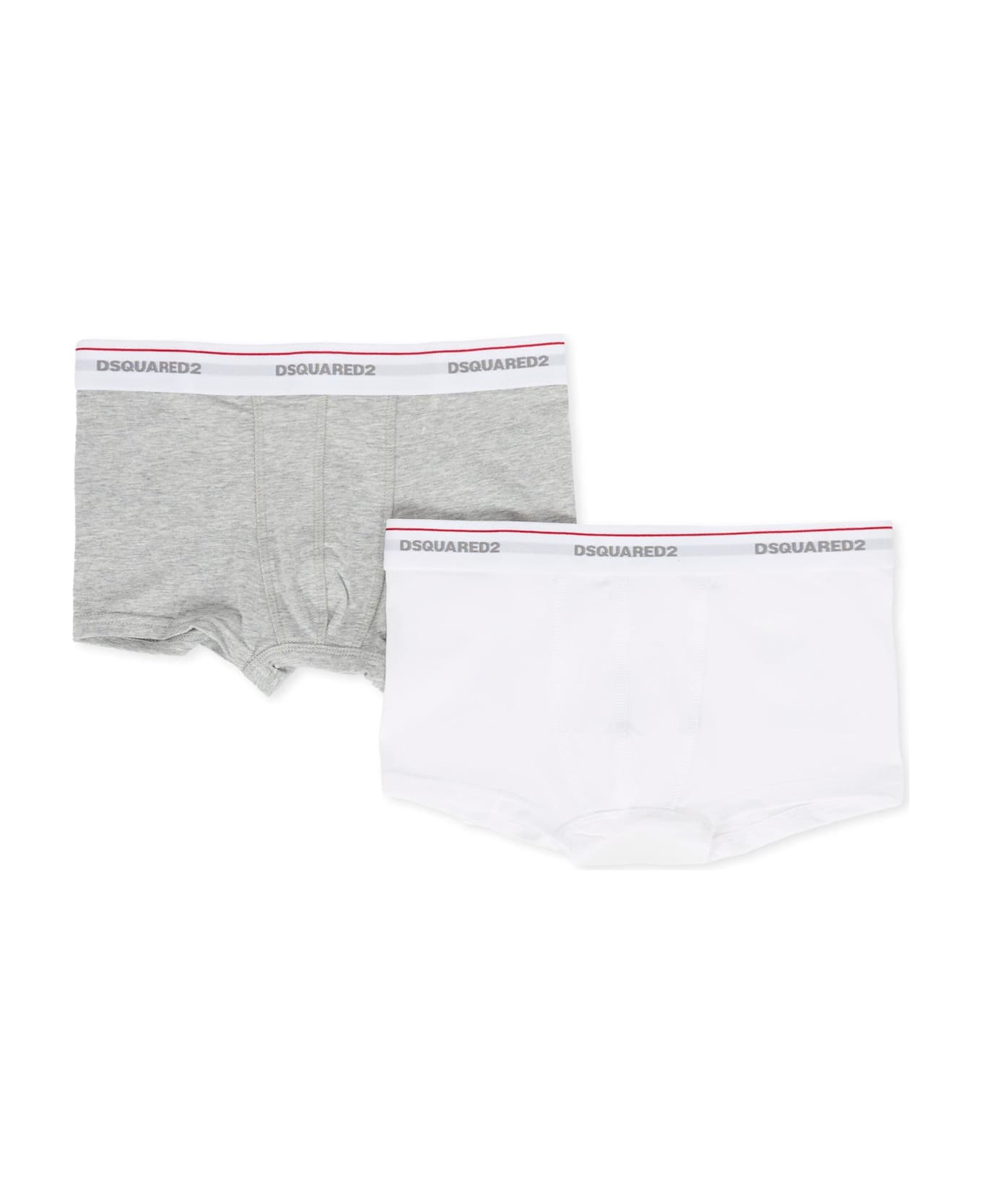 White boxer shorts set composed of two pairs of boxers, grey and white, with logo elastic waistband.