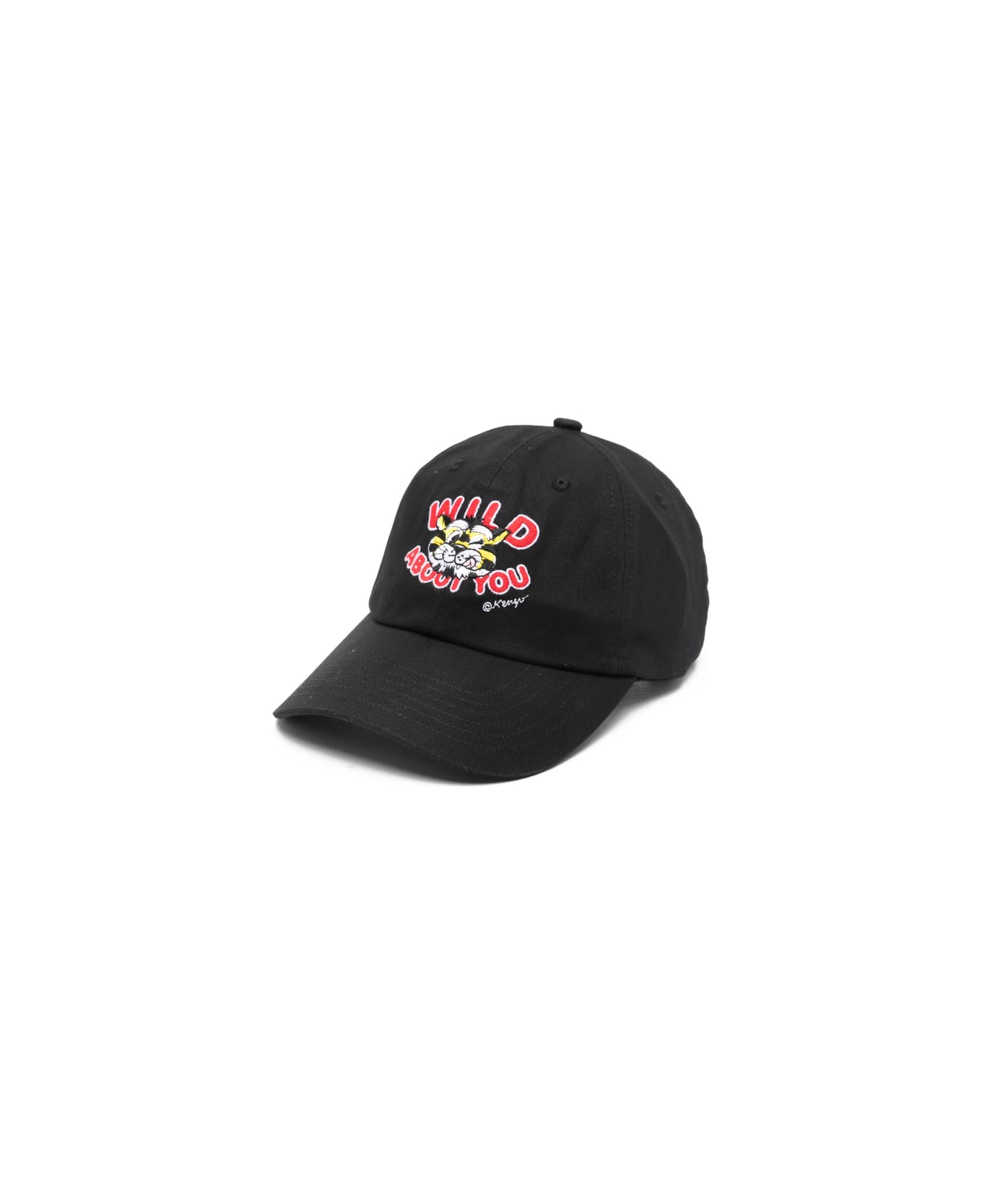 black embroidered motif curved peak adjustable strap at the rear
